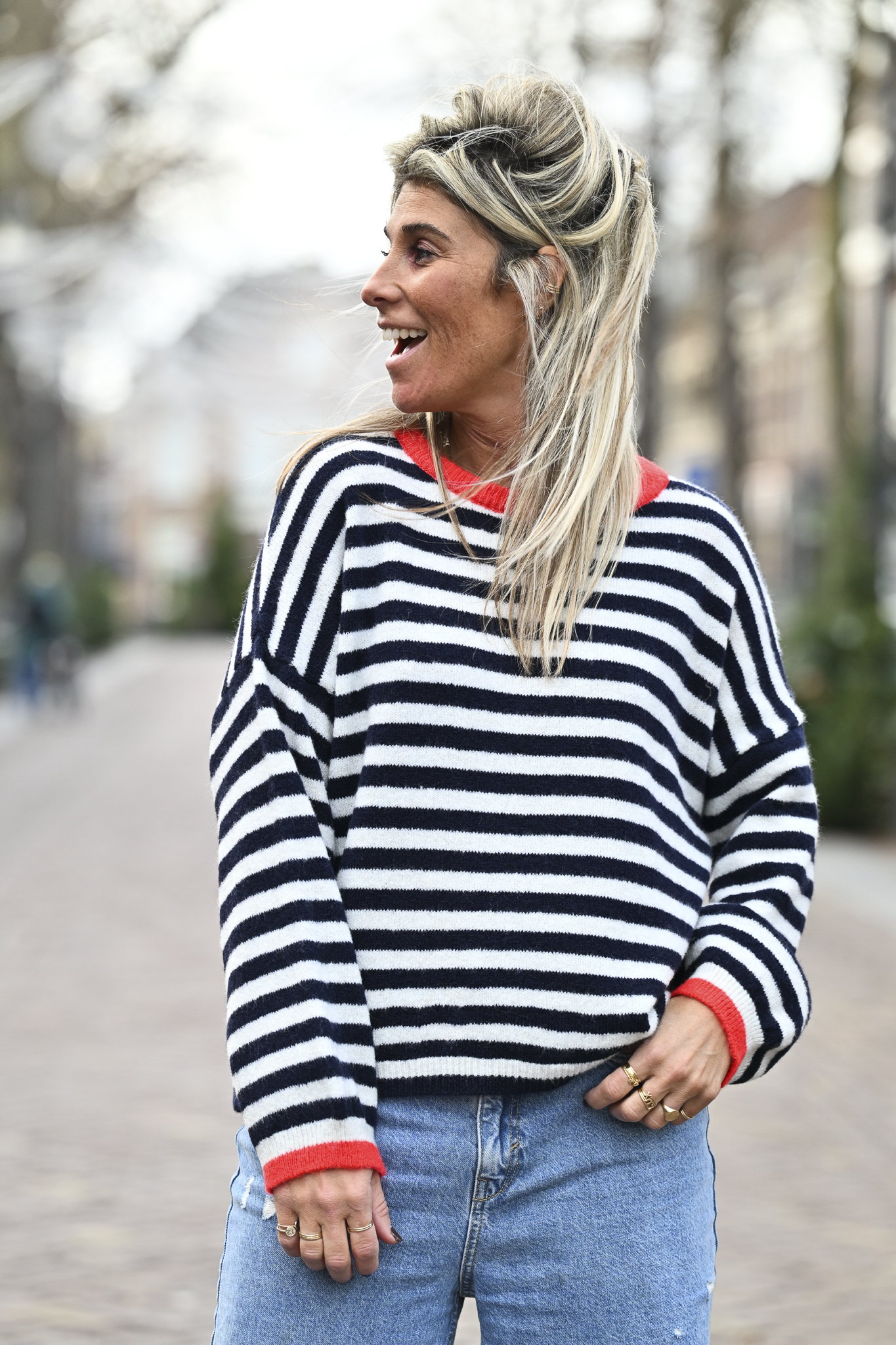 Nog 3 op voorraadVerzending met DHL !Strepen Trui Linn Zwart-Wit