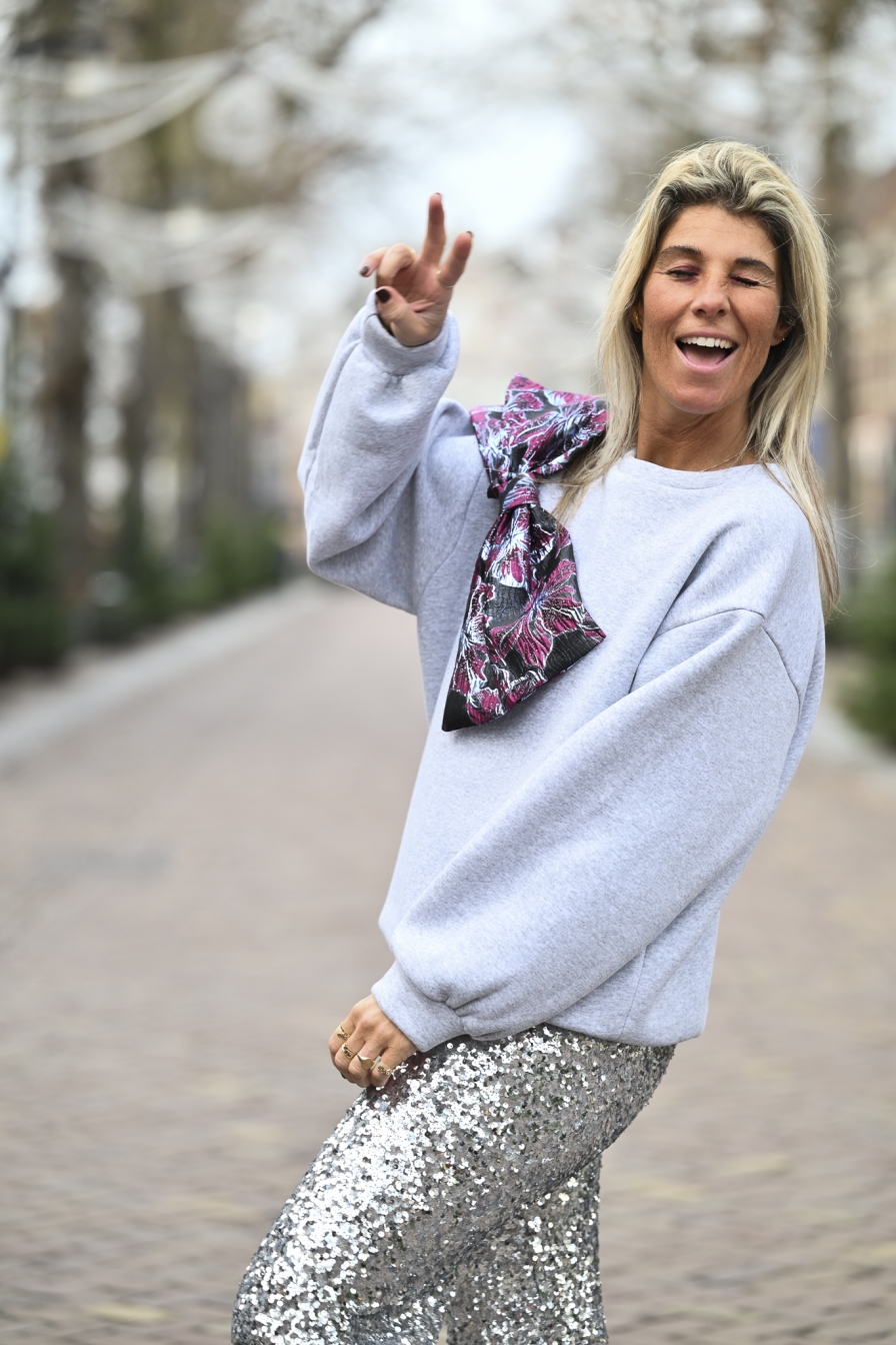 Yes! Nu online: de grijze striktrui! Gemaakt van 100% katoen – heerlijk zacht en comfi .One size, draagbaar t/m maat 44!