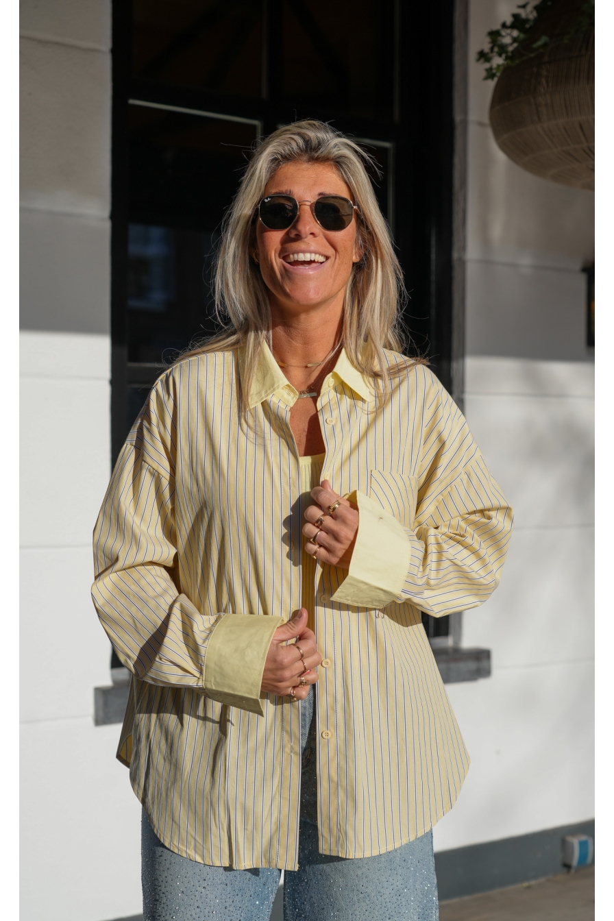 Deze striped blouse is een echte eyecatcher! Gemaakt van een comfy mix van katoen en polyester. Het oversized onesize model past van S/M tot L/XL.