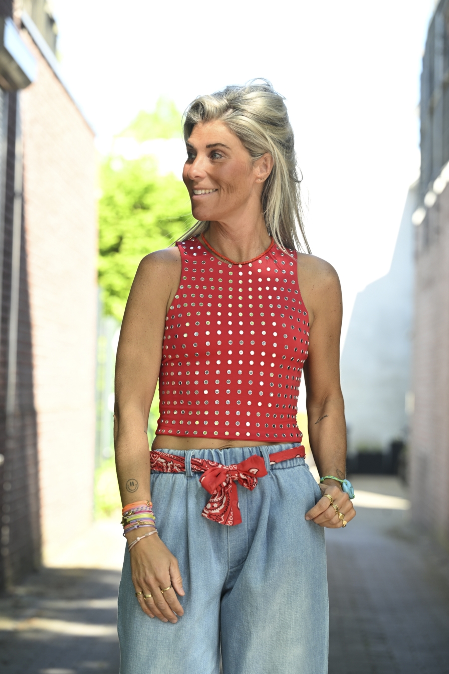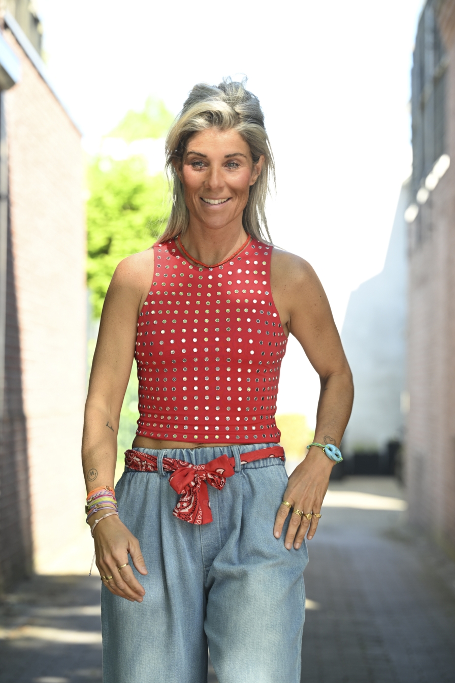 Deze studs TOP heeft lekker veel stretch. De studs zijn vastgeslagen en zitten daardoor goed op hun plek. Op de foto draag ik maat...