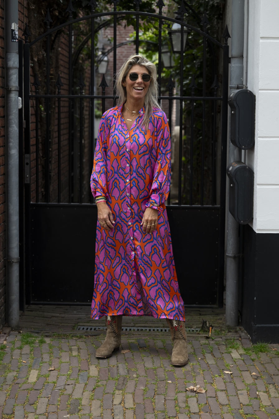 Deze luchtige kimono is gemaakt van een zachte mix van viscose en zijde, waardoor hij heerlijk comfortabel aanvoelt op de huid. Extra leuk: we hebben er een bijpassende scrunchie van dezelfde stof bij laten maken — perfect voor in je haar of nonchalant om je pols.