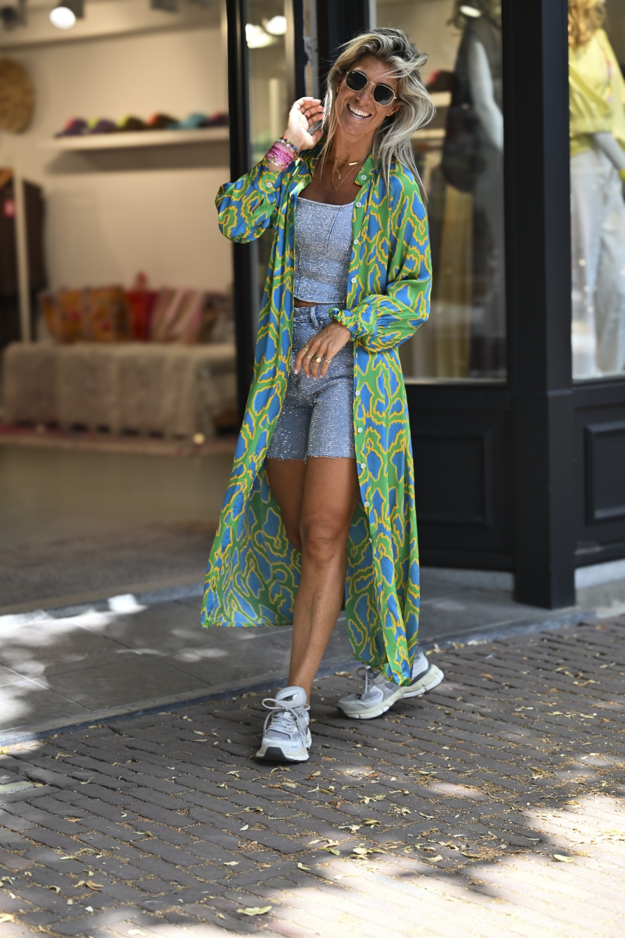 Deze luchtige kimono is gemaakt van een zachte mix van viscose en zijde, waardoor hij heerlijk comfortabel aanvoelt op de huid. Extra leuk: we hebben er een bijpassende scrunchie van dezelfde stof bij laten maken — perfect voor in je haar of nonchalant om je pols.