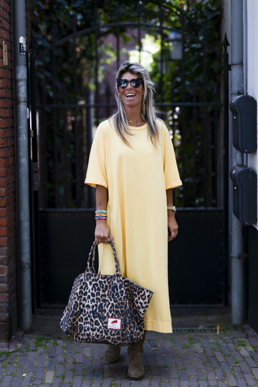 Sweatdress Jolein is gemaakt van 97% katoen en voorzien van stretch, draag dit one-size model moeiteloos tot en met maat L/XL. De 3/4 mouwen en twee splitten aan de zijkant geven ‘m net die extra flair.