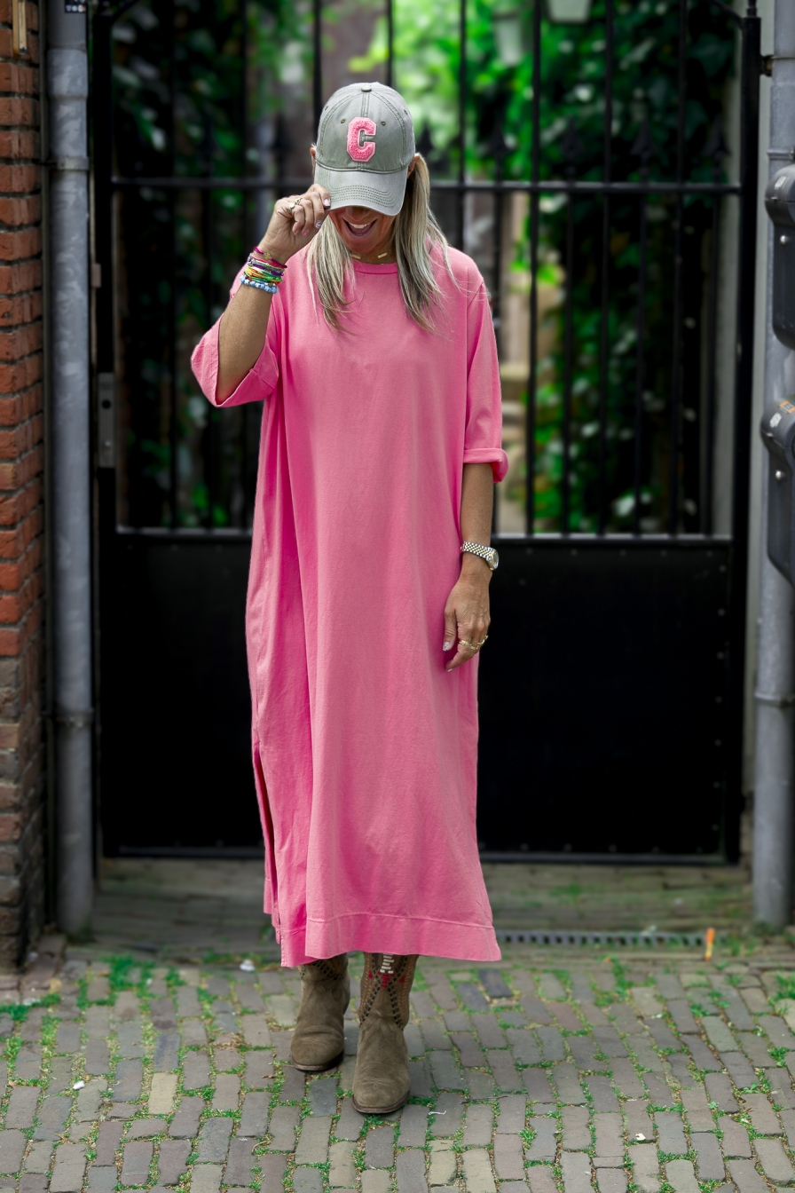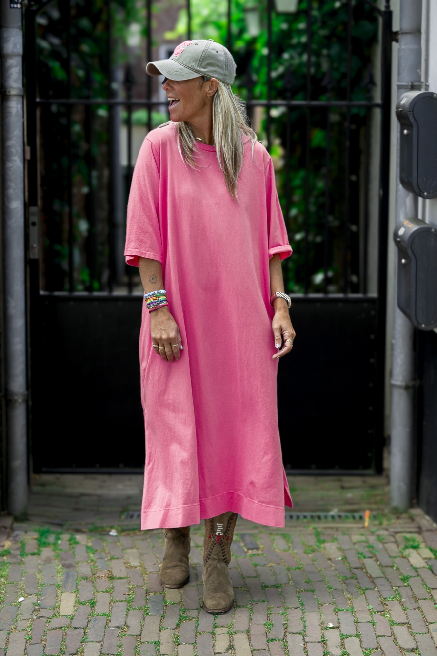 Sweatdress Jolein is gemaakt van 97% katoen en voorzien van stretch, draag dit one-size model moeiteloos tot en met maat L/XL. De 3/4 mouwen en twee splitten aan de zijkant geven ‘m net die extra flair.