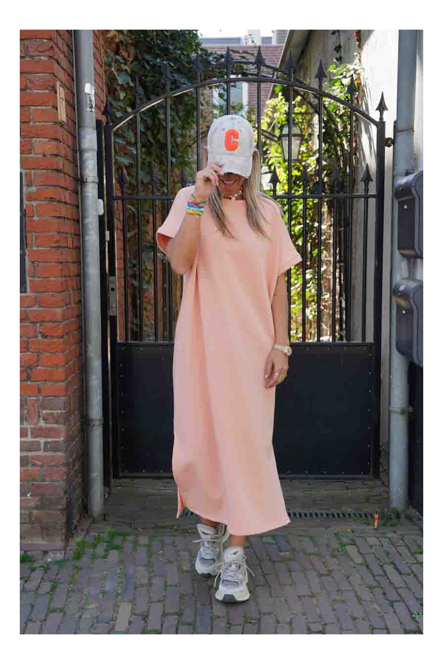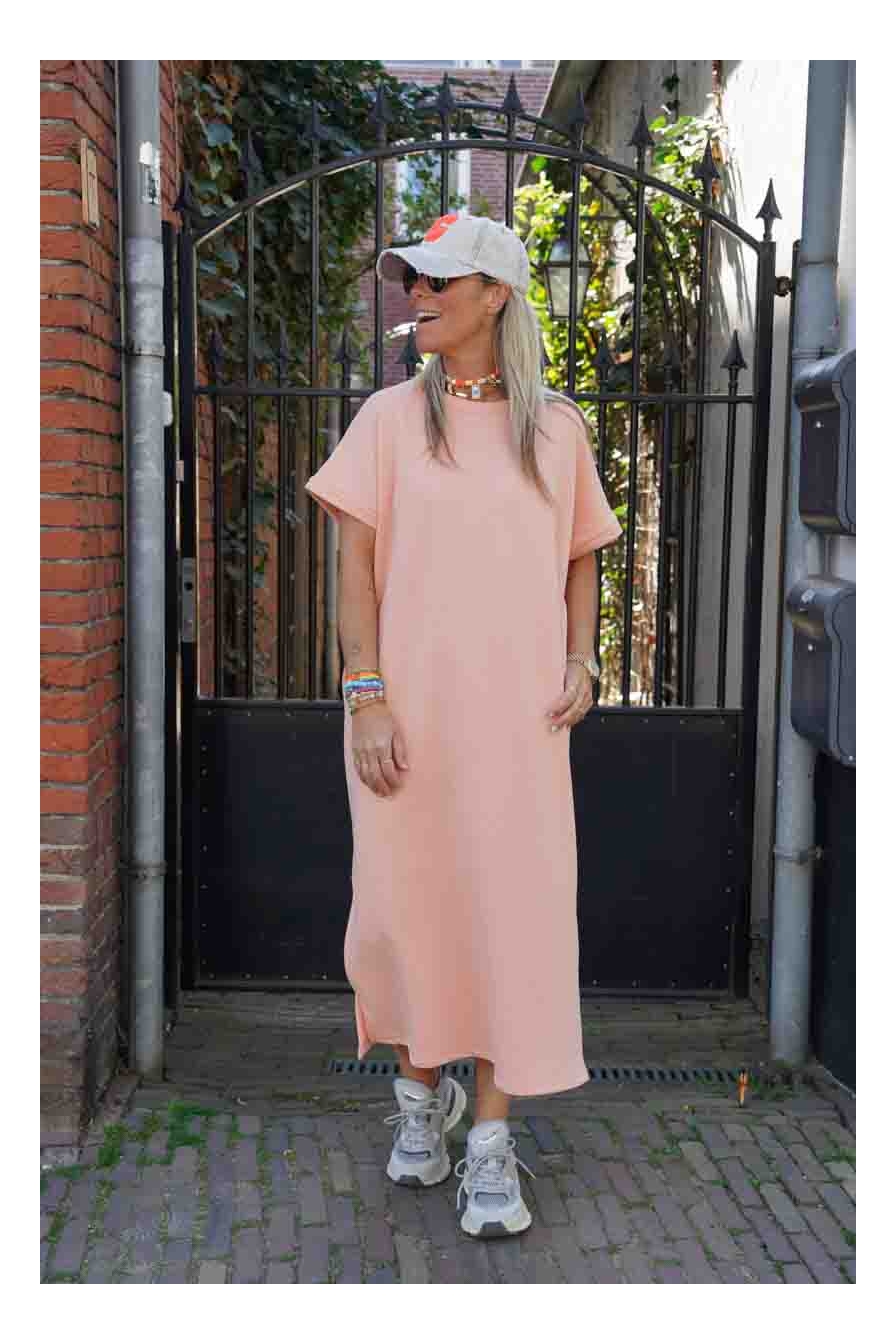 Sweatdress Veronique gemaakt van 100% zacht katoen, met kapmouwtjes, een V-hals, 2 steekzakken én speelse splitjes aan de zijkant voor die effortless vibe! Dit one size model draag je tot maat L/XL!