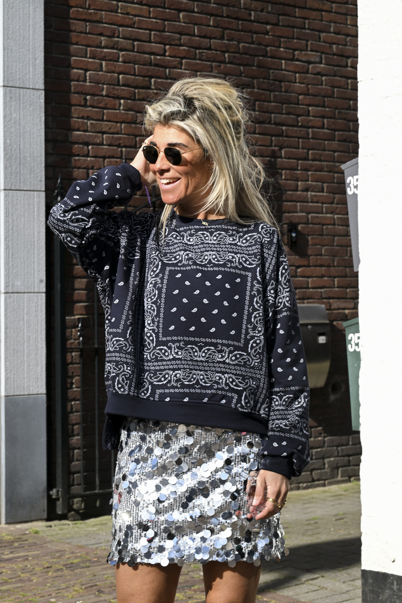 Check deze gave 100% katoenen Bandana sweater. Onesize model en perfect te combineren met de bijpassende jogging.