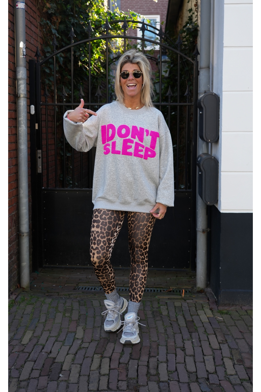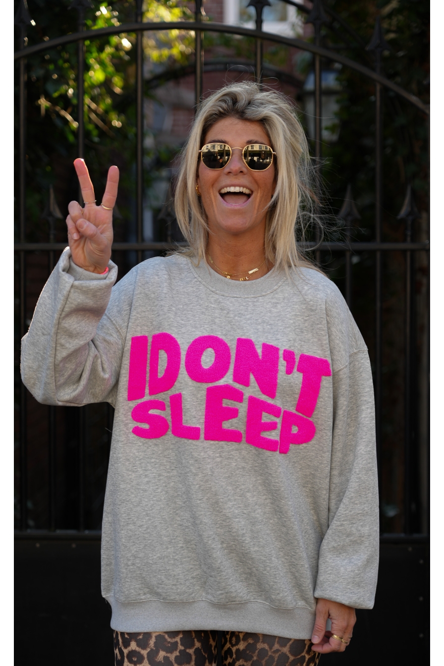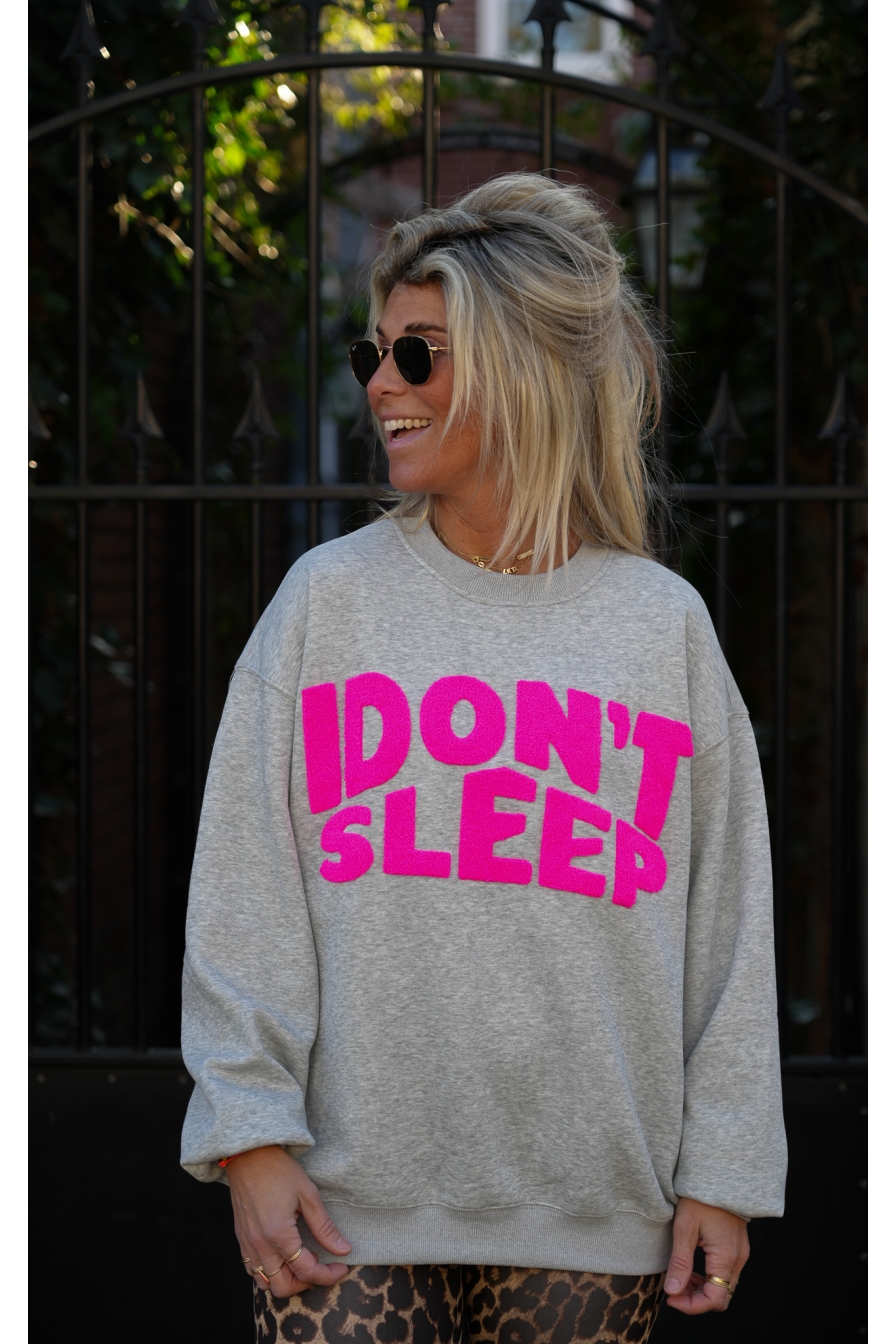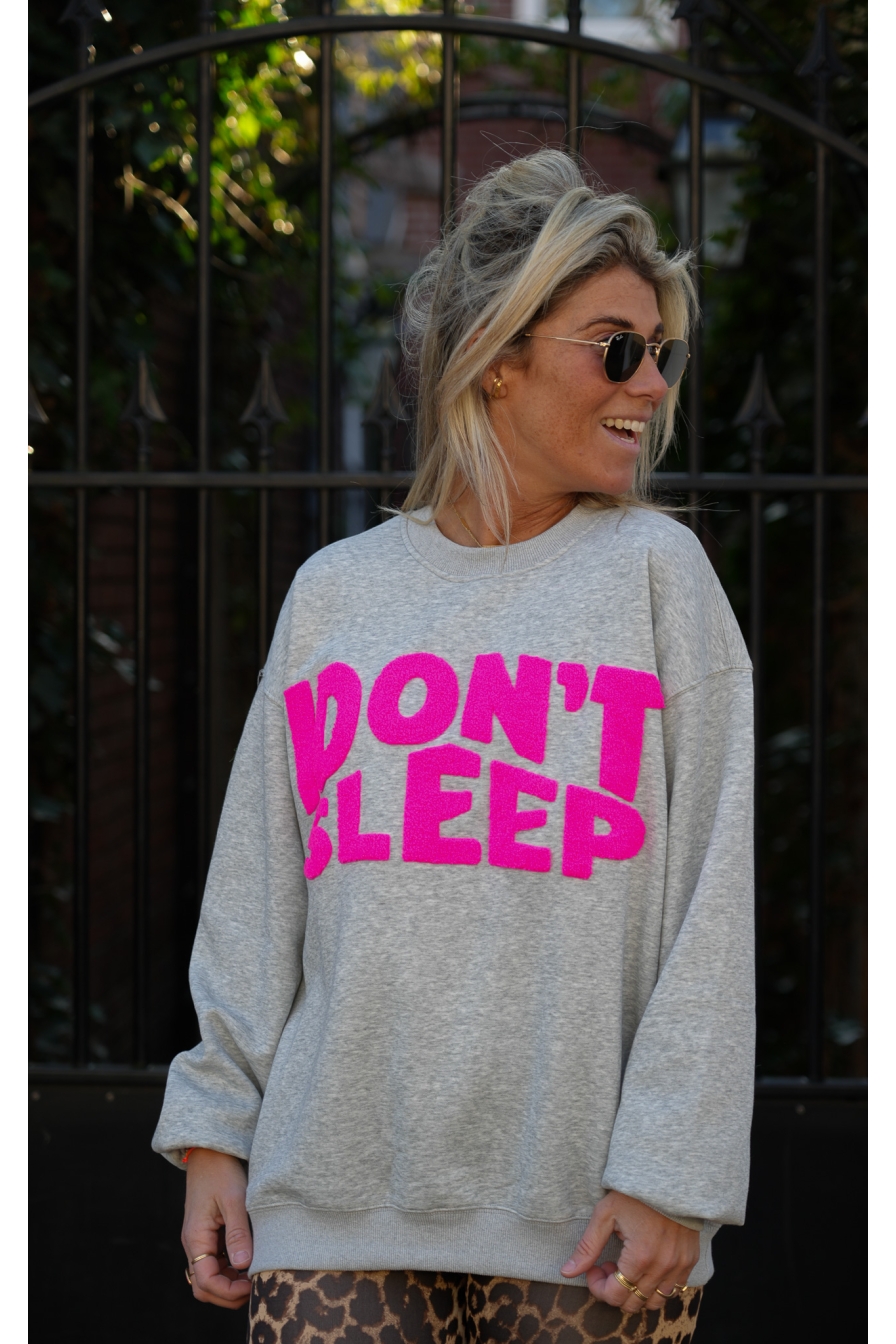 Verzending met DHL !Sweater Dont Sleep Grijs - Fuchsia