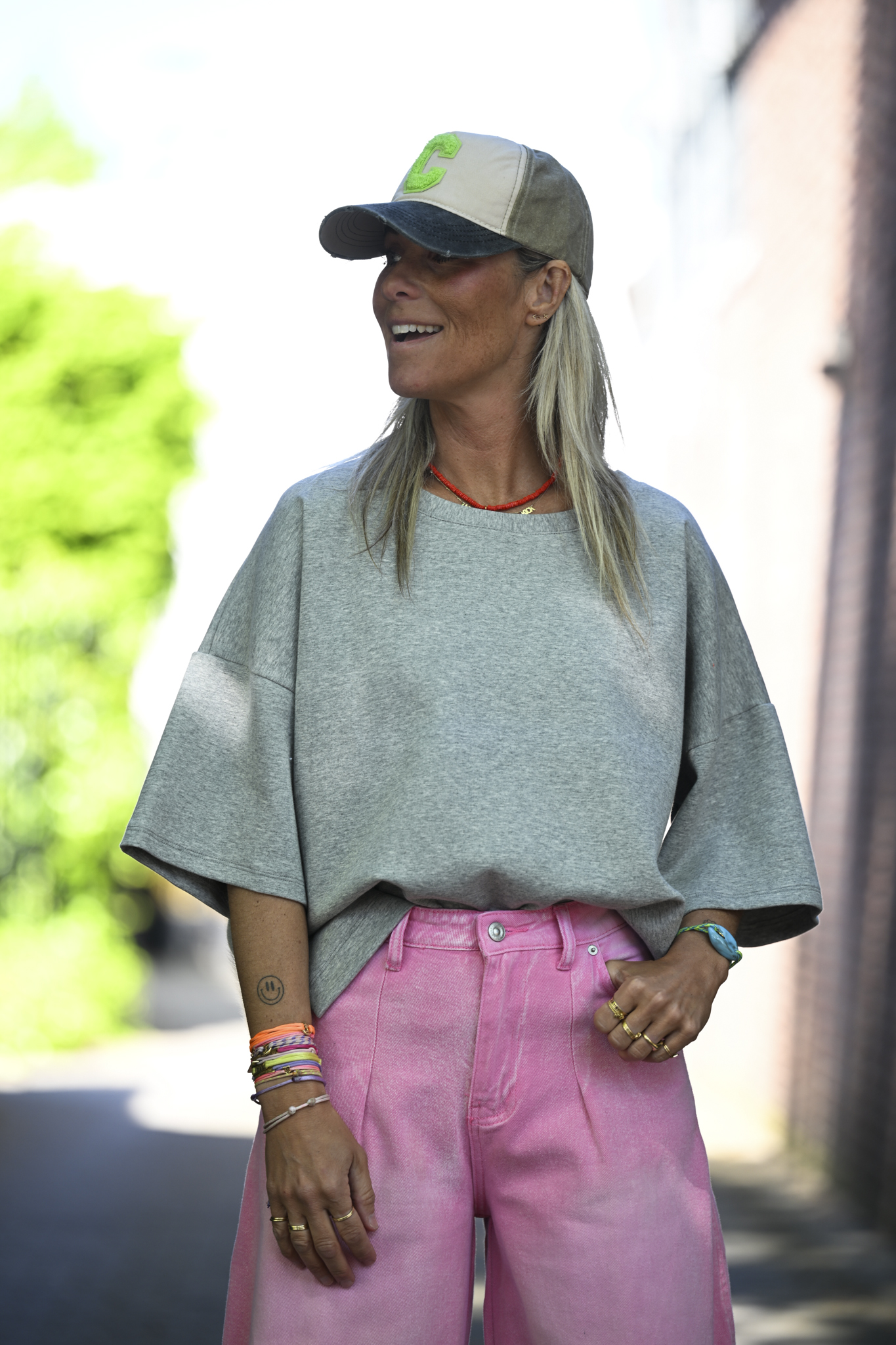 Streetstyle oversized trui Doua, gemaakt van 100% katoen met 3/4 mouwen. Wijd model en draagbaar t/m maat XL/42.