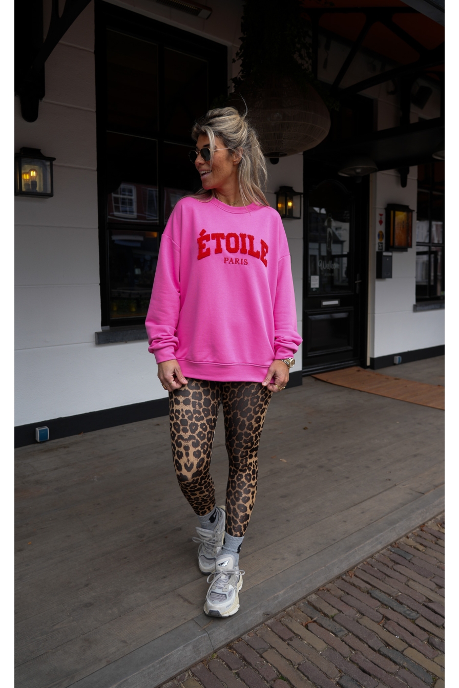 Sweater Étoile in fuchsia is dé vibe! Dit one-size model van 100% katoen is heerlijk zacht en heeft die relaxte, trendy fit. Draag ‘m oversized en style met de Lisa legging voor een moeiteloos coole look!