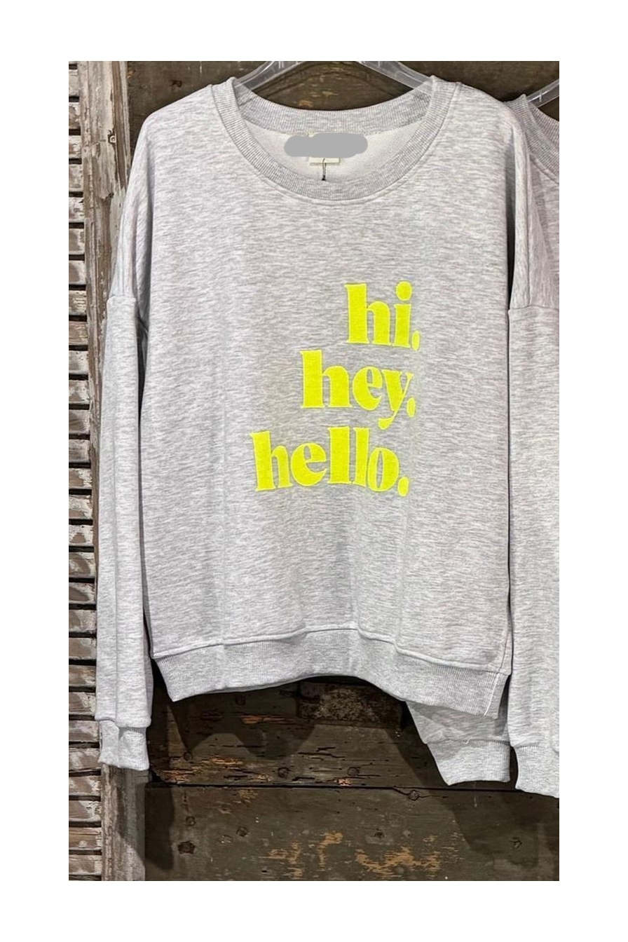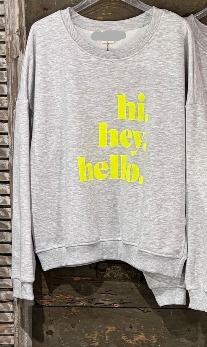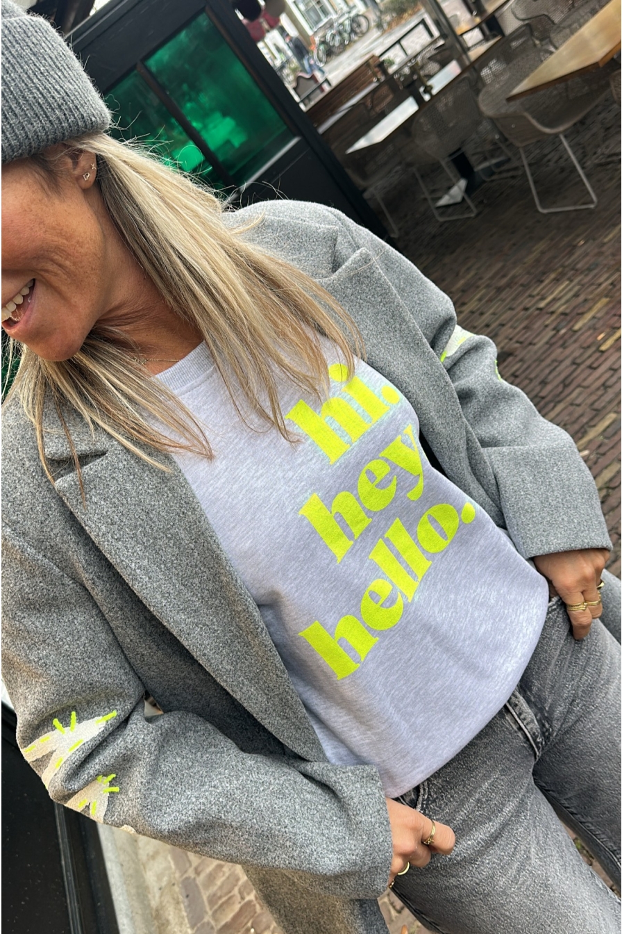 Verzending met DHL !Sweater Hi He Hello Grijs Geel