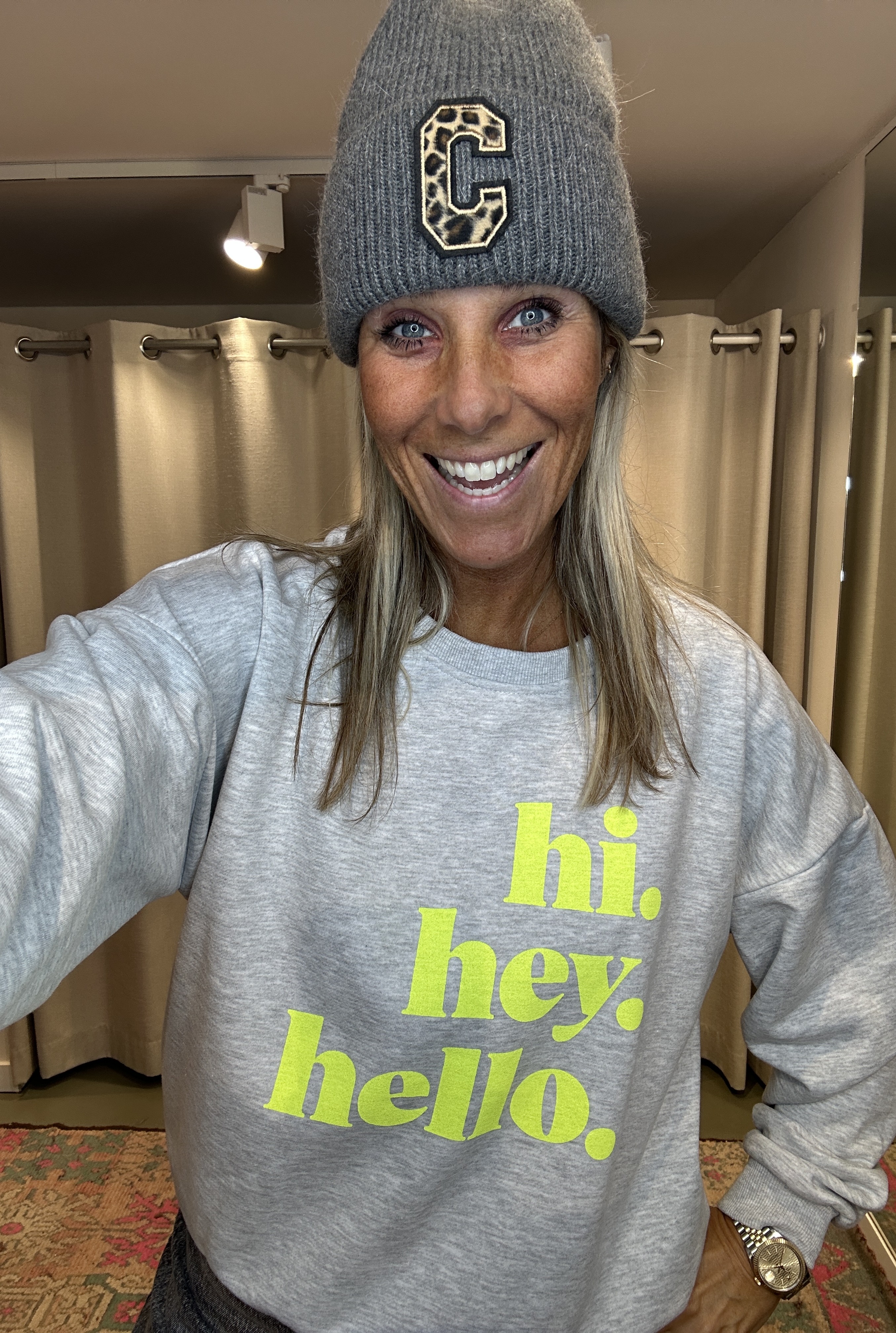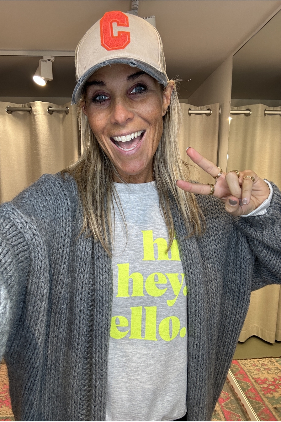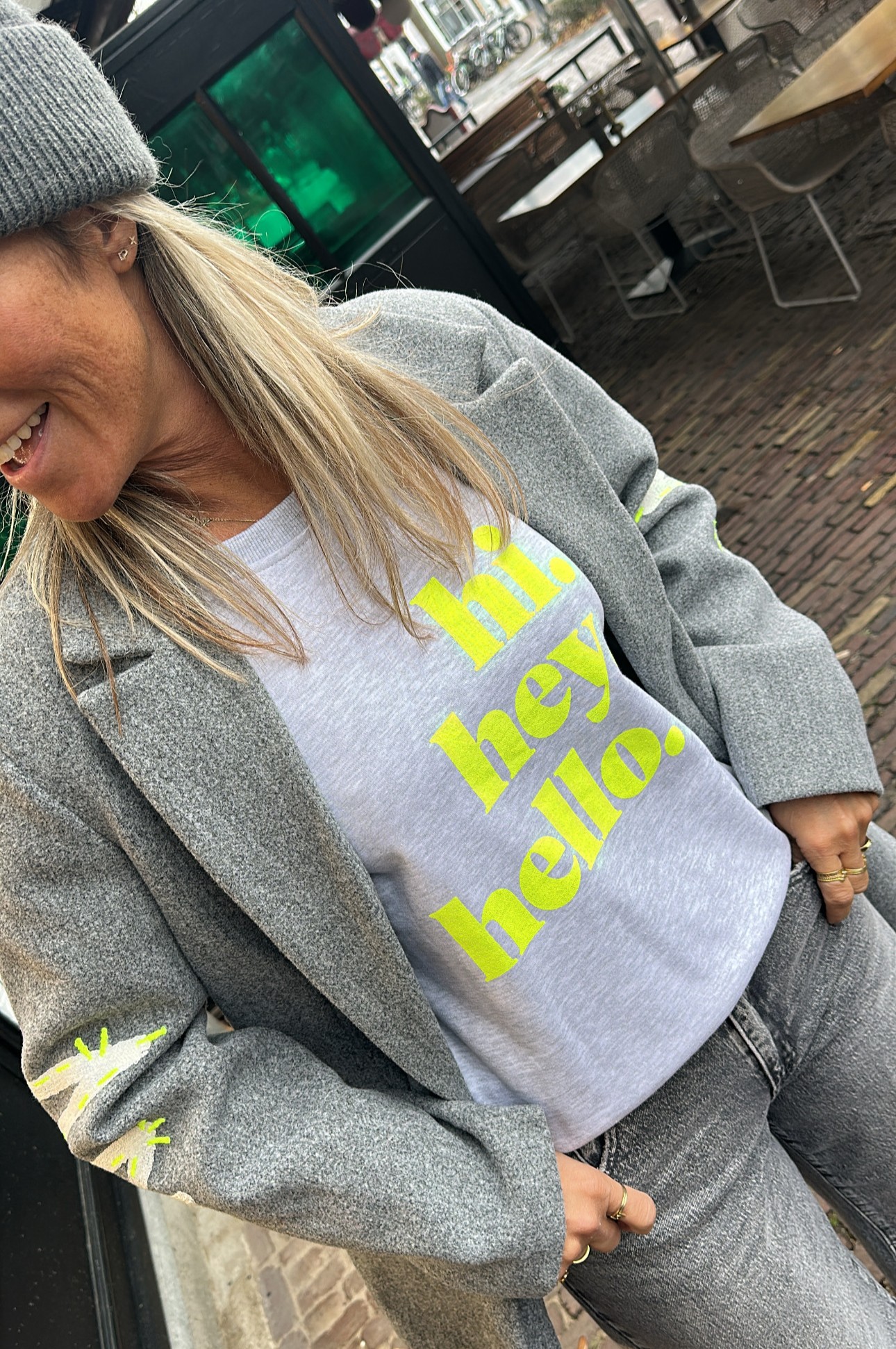 Verzending met DHL !Sweater Hi He Hello Grijs Geel