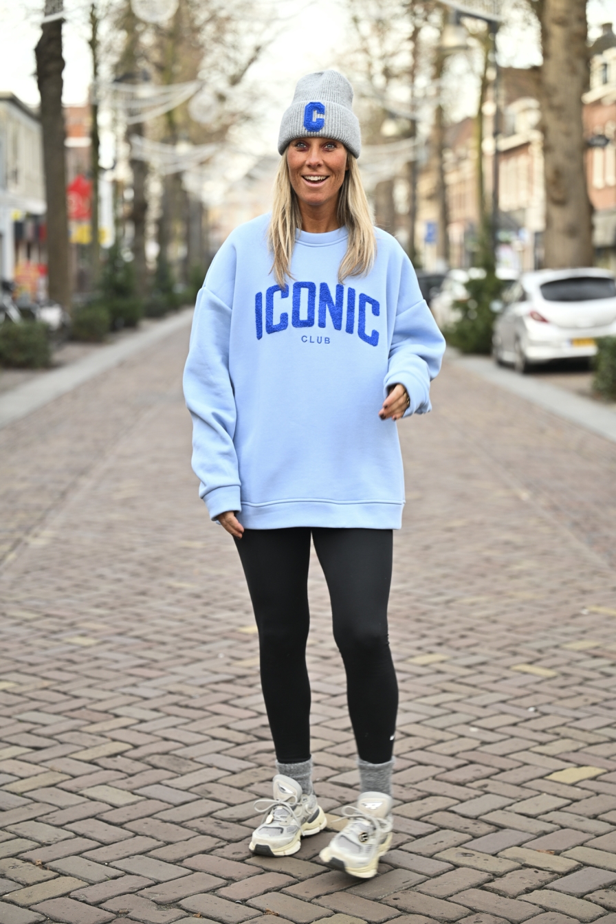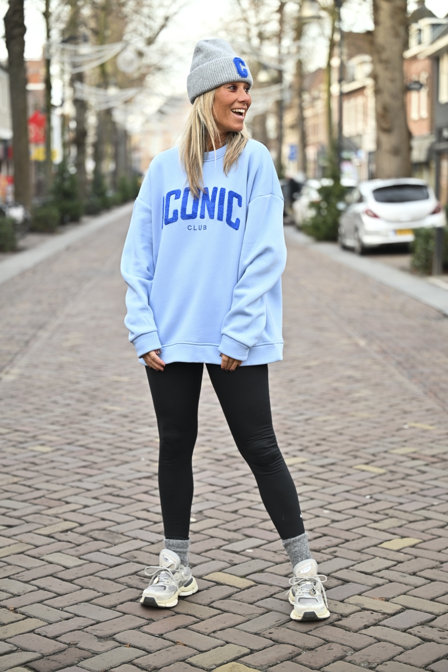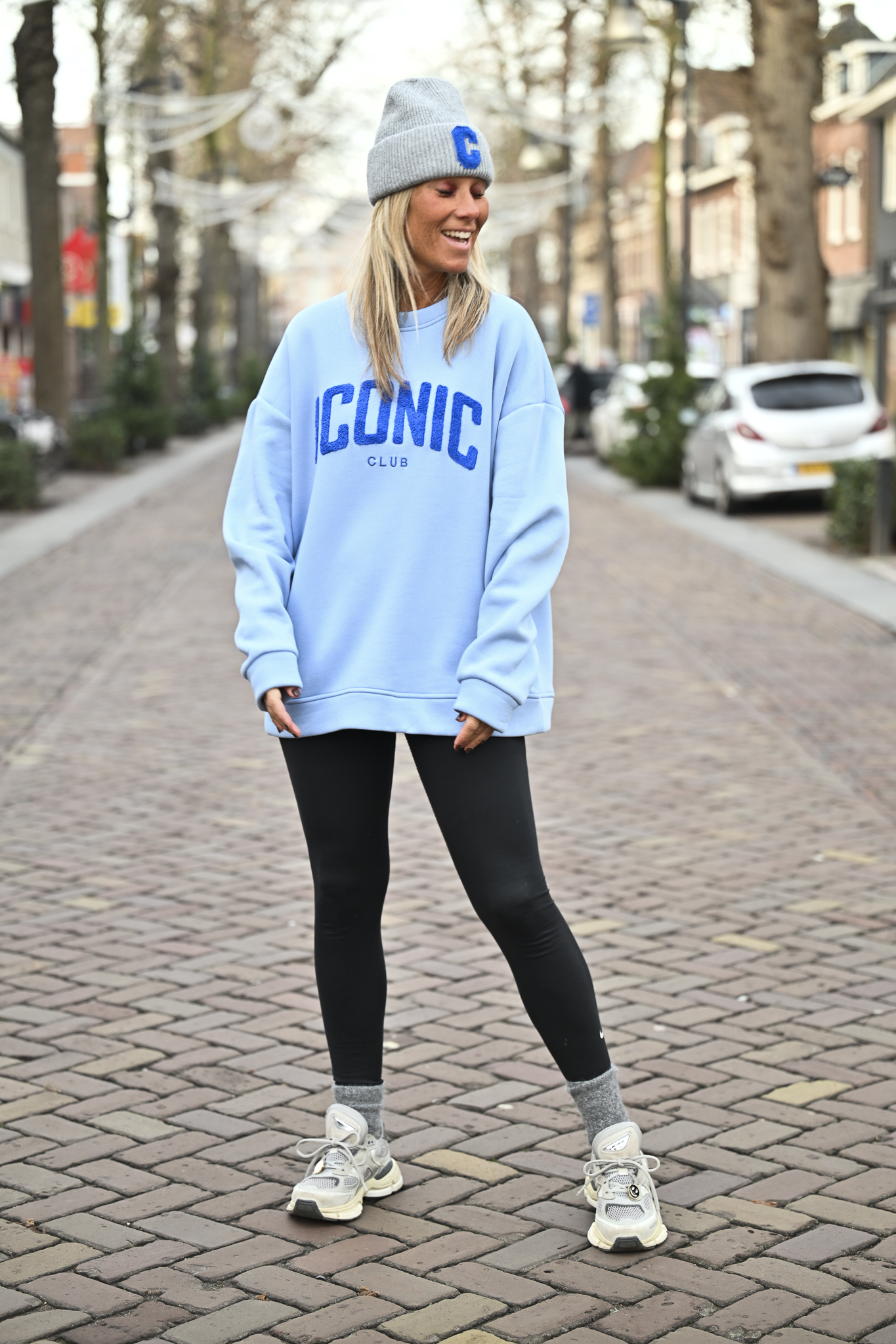 Sweater ICON is gemaakt van 80% katoen. Deze onesize sweater valt iets langer en komt daardoor mooi over de billen. Perfect om te dragen op een legging met vette sneakers eronder en je outfit is meteen klaar. Op de borst staat ICON Club geborduurde, de achterkant is effen zonder opdruk.