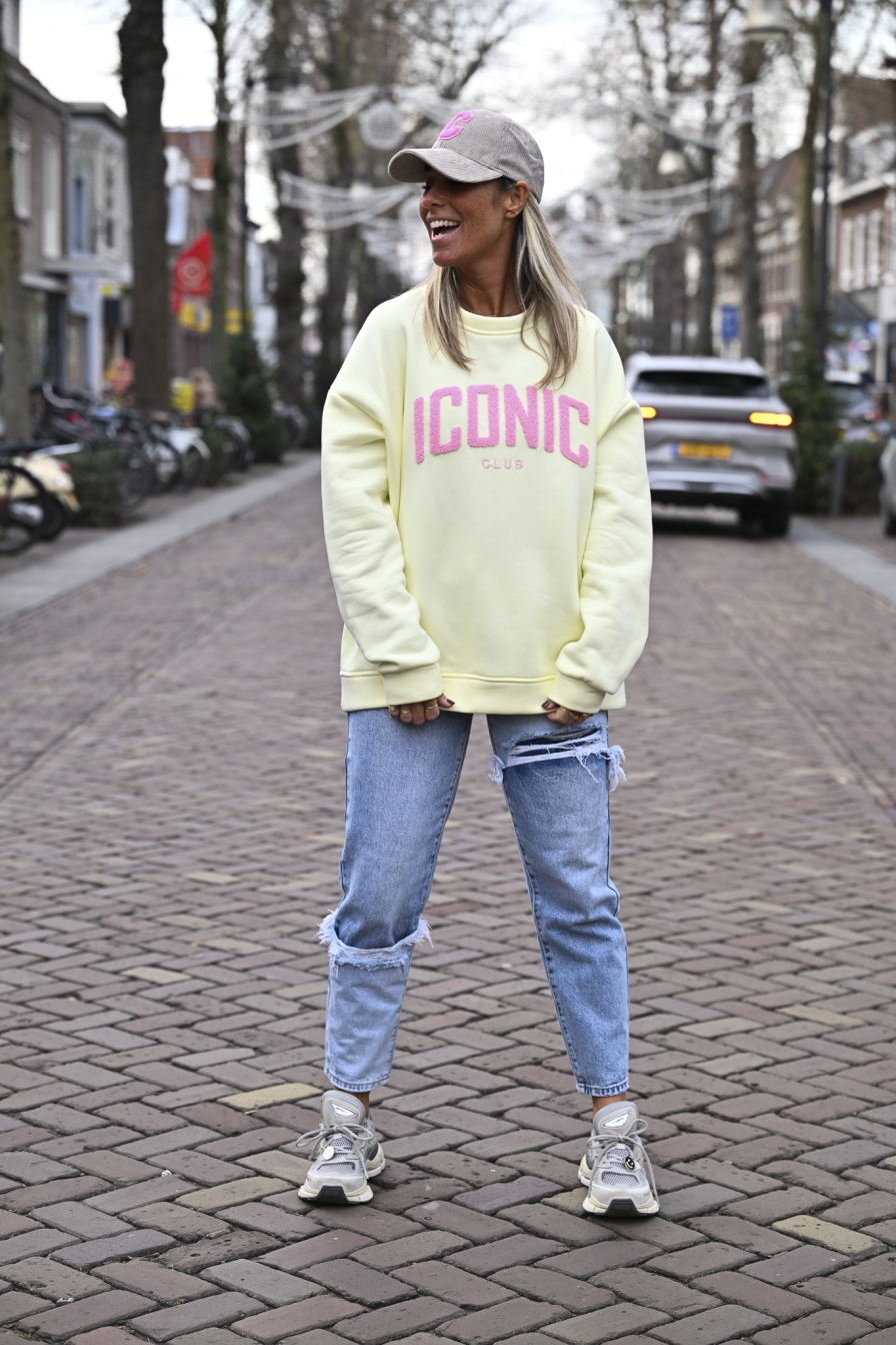 Sweater ICON is gemaakt van 80% katoen. Deze onesize sweater valt iets langer en komt daardoor mooi over de billen. Perfect om te dragen op een legging met vette sneakers eronder en je outfit is meteen klaar. Op de borst staat ICON Club geborduurde, de achterkant is effen zonder opdruk.