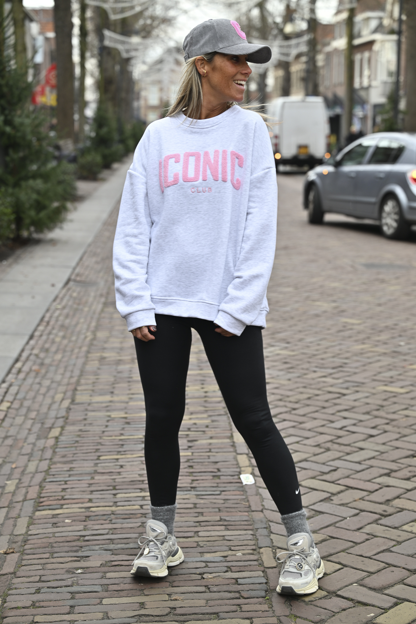 Sweater ICON is gemaakt van 80% katoen. Deze onesize sweater valt iets langer en komt daardoor mooi over de billen. Perfect om te dragen op een legging met vette sneakers eronder en je outfit is meteen klaar. Op de borst staat ICON Club geborduurde, de achterkant is effen zonder opdruk.