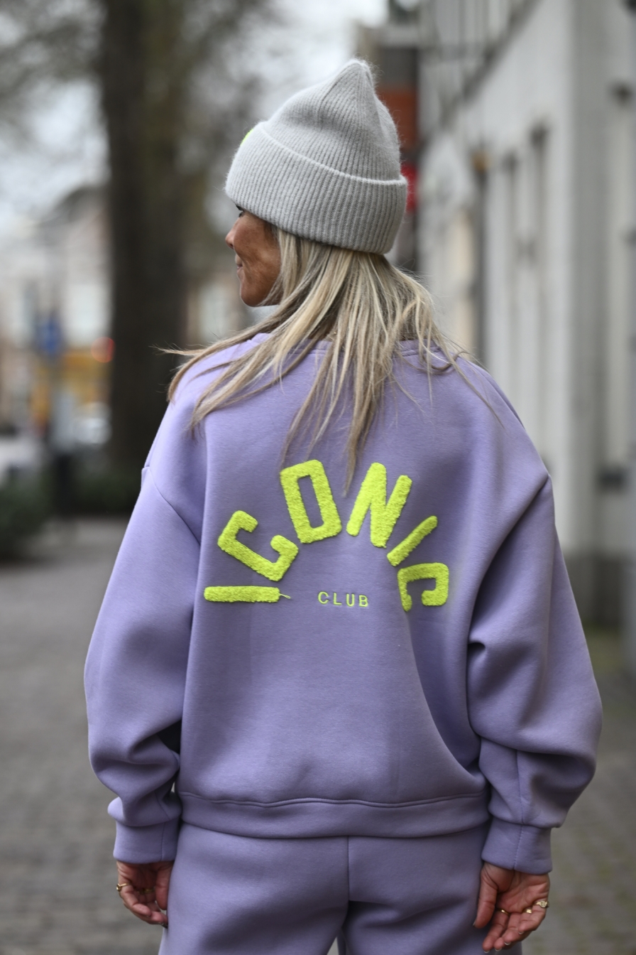 Deze Sweater ICON verschilt op twee punten van de andere ICON-sweaters. Het model is niet oversized maar regular fit. Op de linkerborst staat ICON Club geborduurd en op de rug staat eveneens ICON in Neongele letters. Tip: combineer met de bijpassende Jogging ICON om de set compleet te maken.