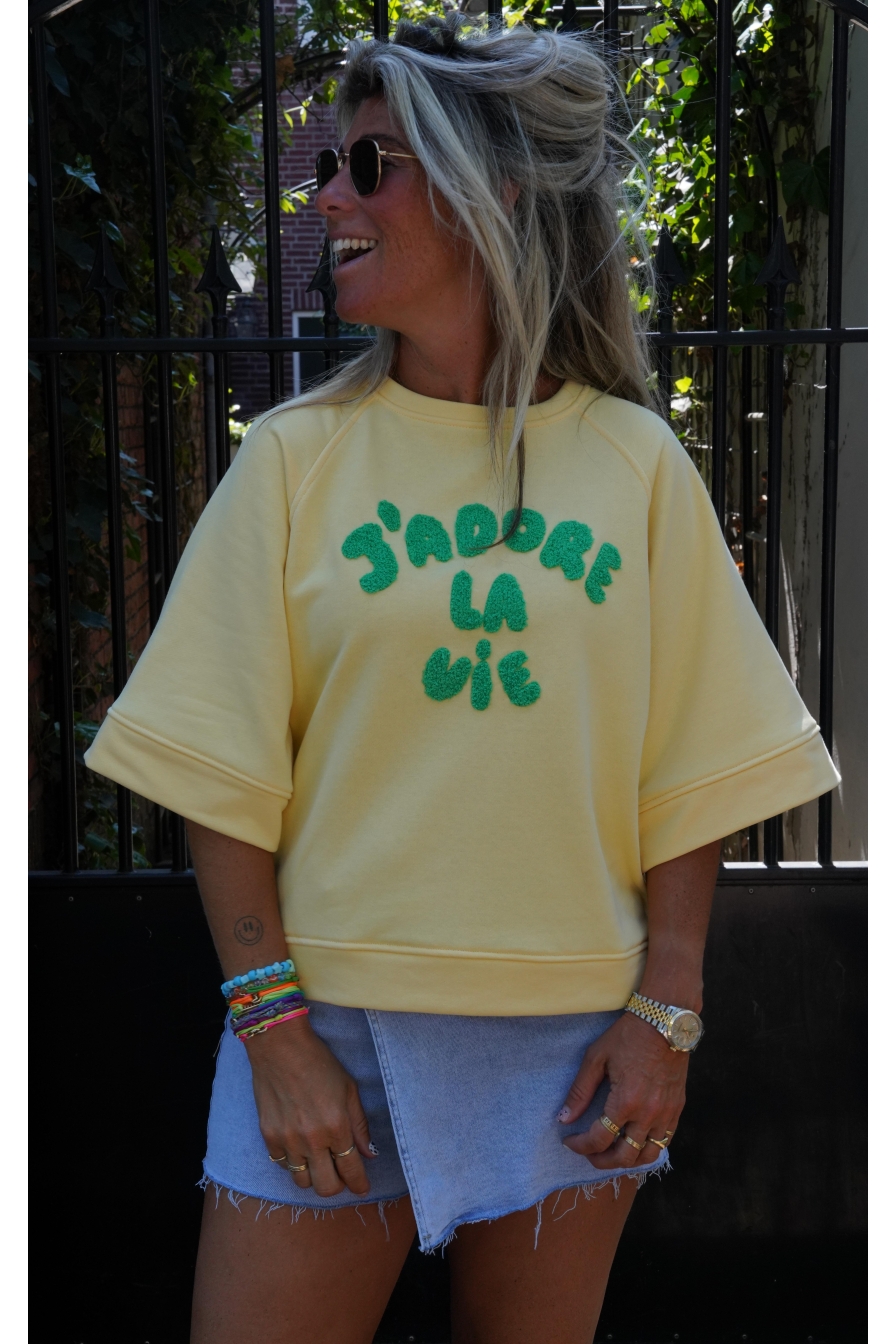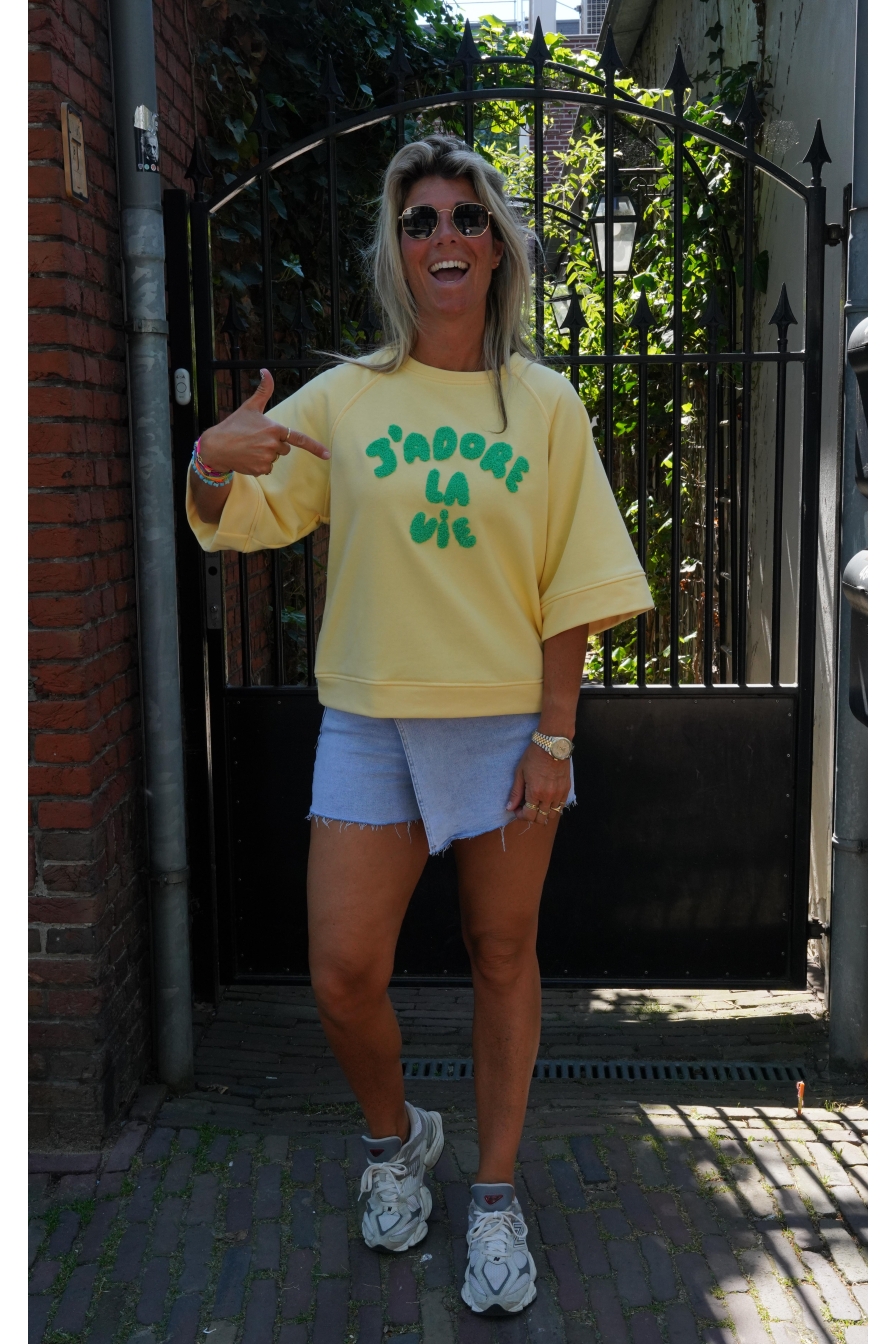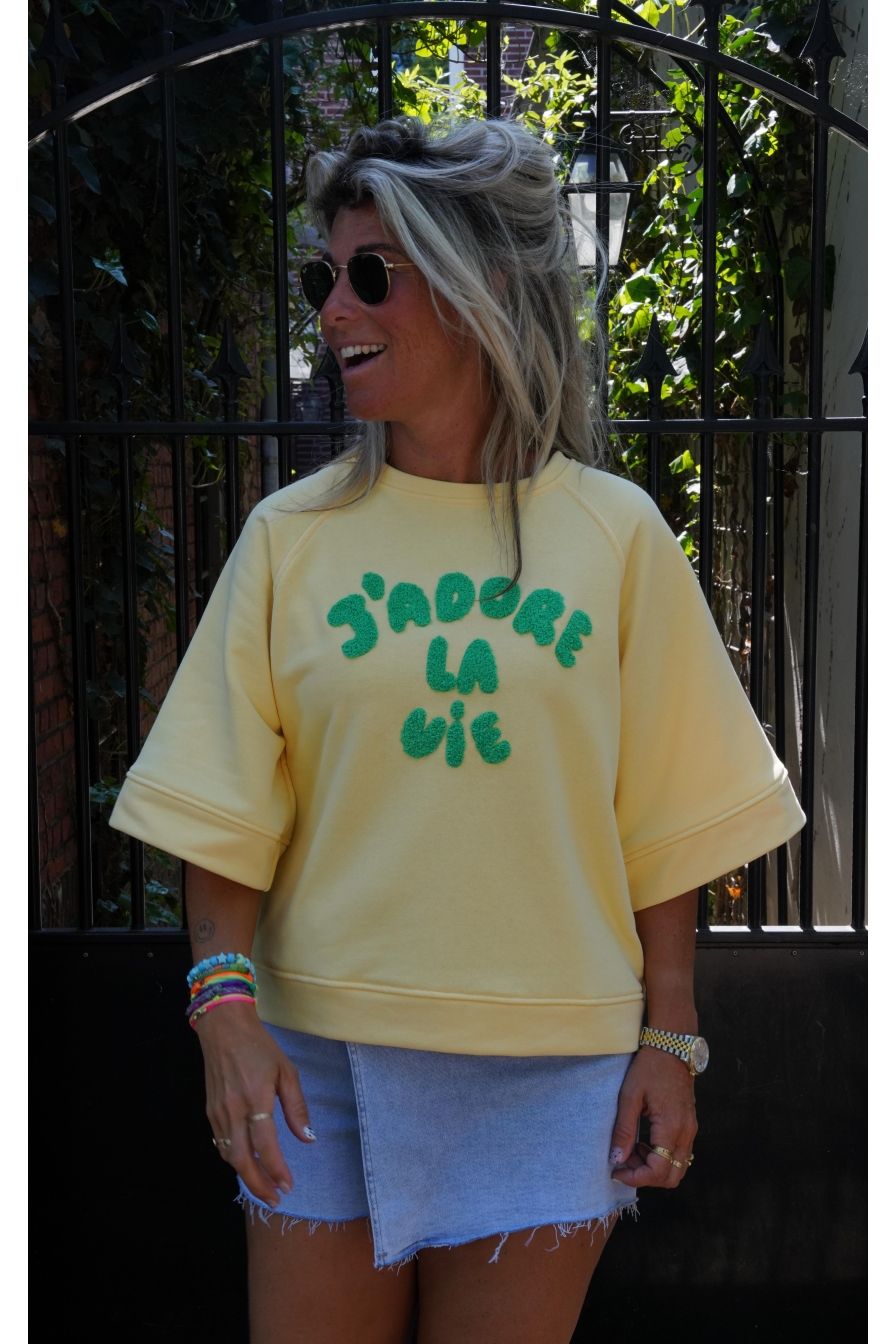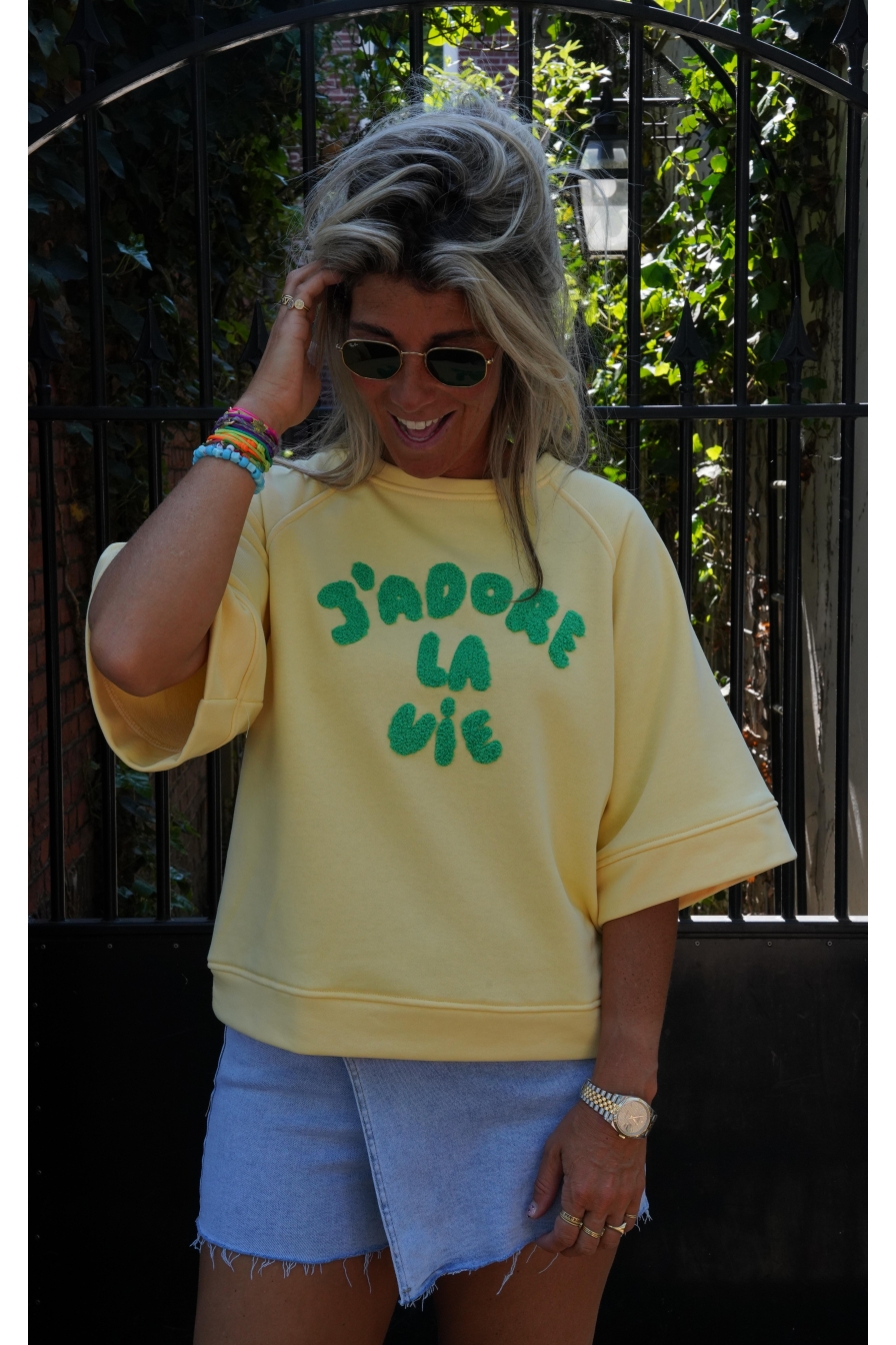 Verzending met DHL !Sweater J´ADORE Geel