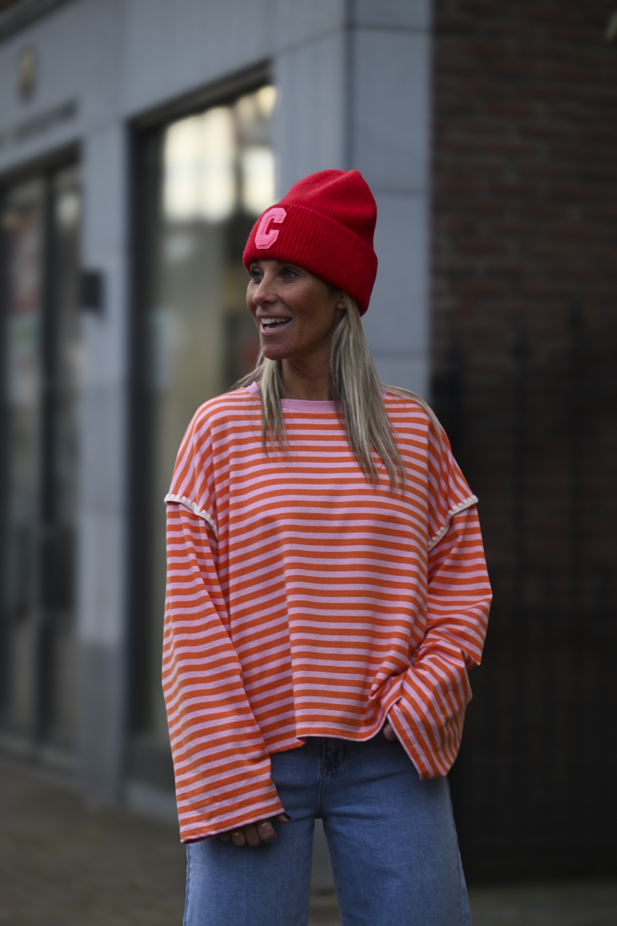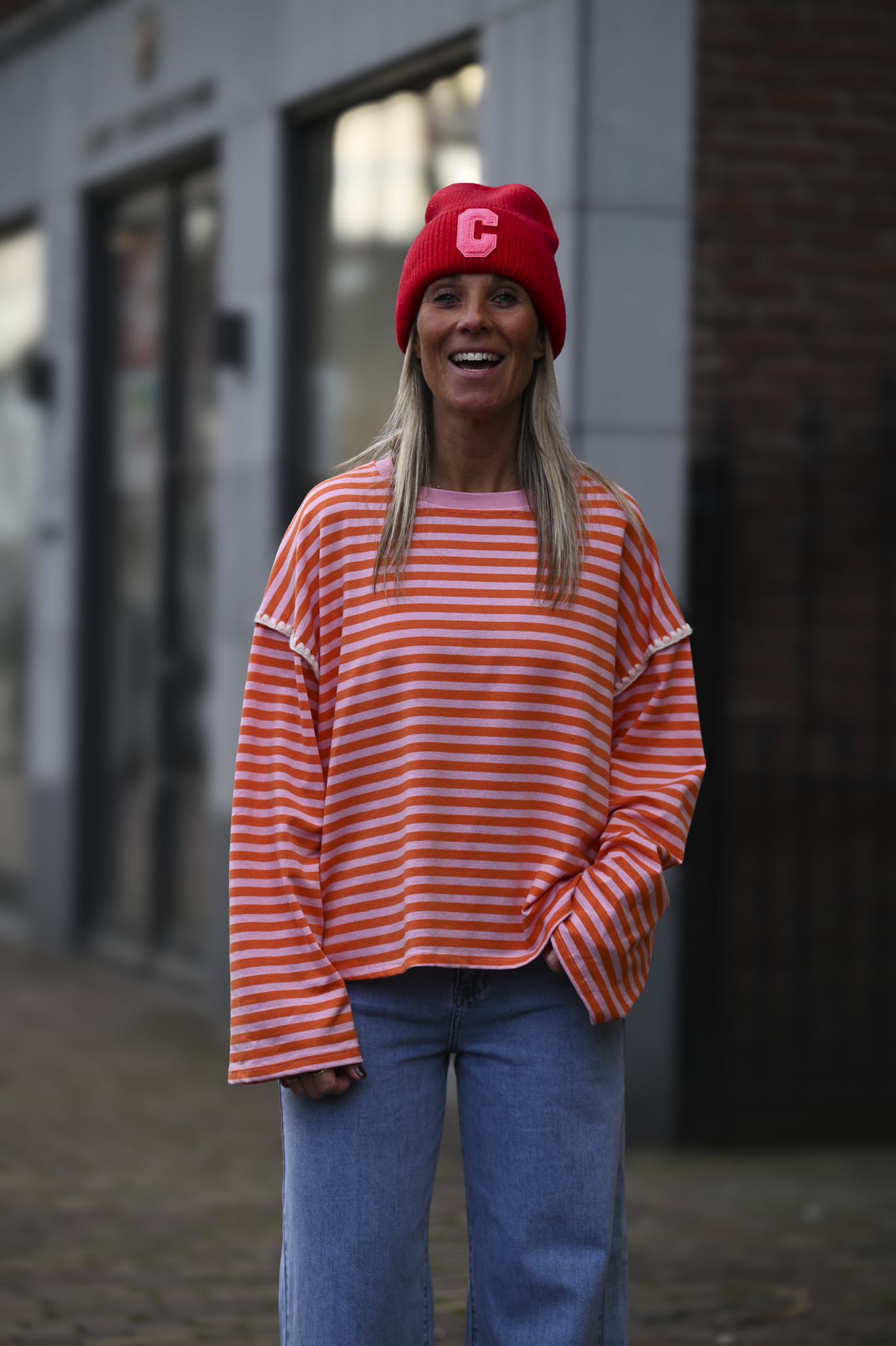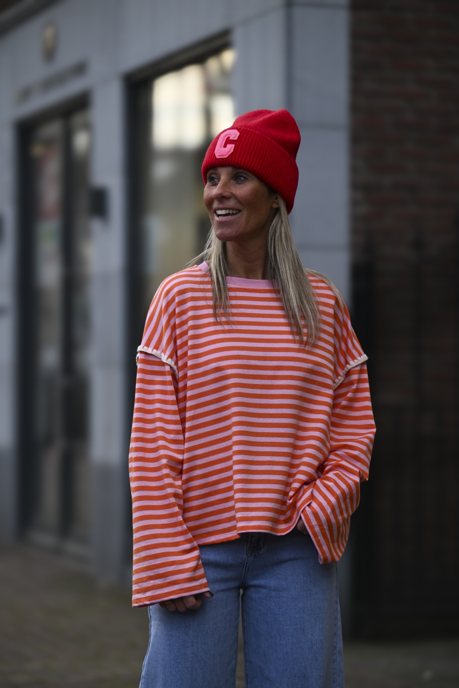 Verzending met DHL !Sweater Kaat Oranje-Roze