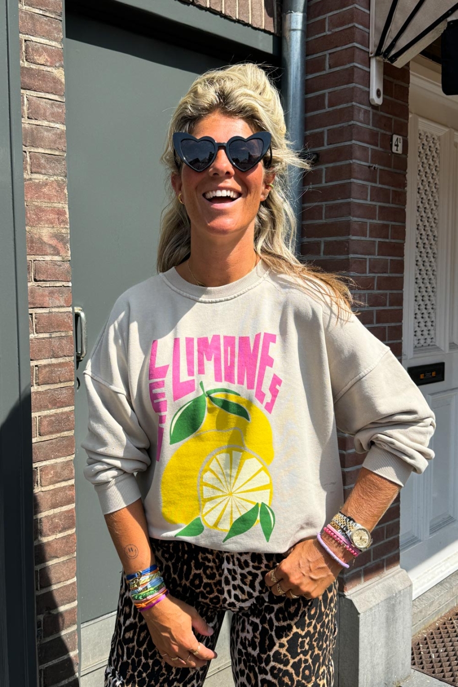 Sweater Les Limones is een trendy en comfortabele keuze! Gemaakt van 80% katoen en 20% polyester, combineert deze sweater zachtheid met duurzaamheid. Het Onesize model is geschikt voor maten tot en met L/XL en geeft je look een moeiteloze, stijlvolle touch.