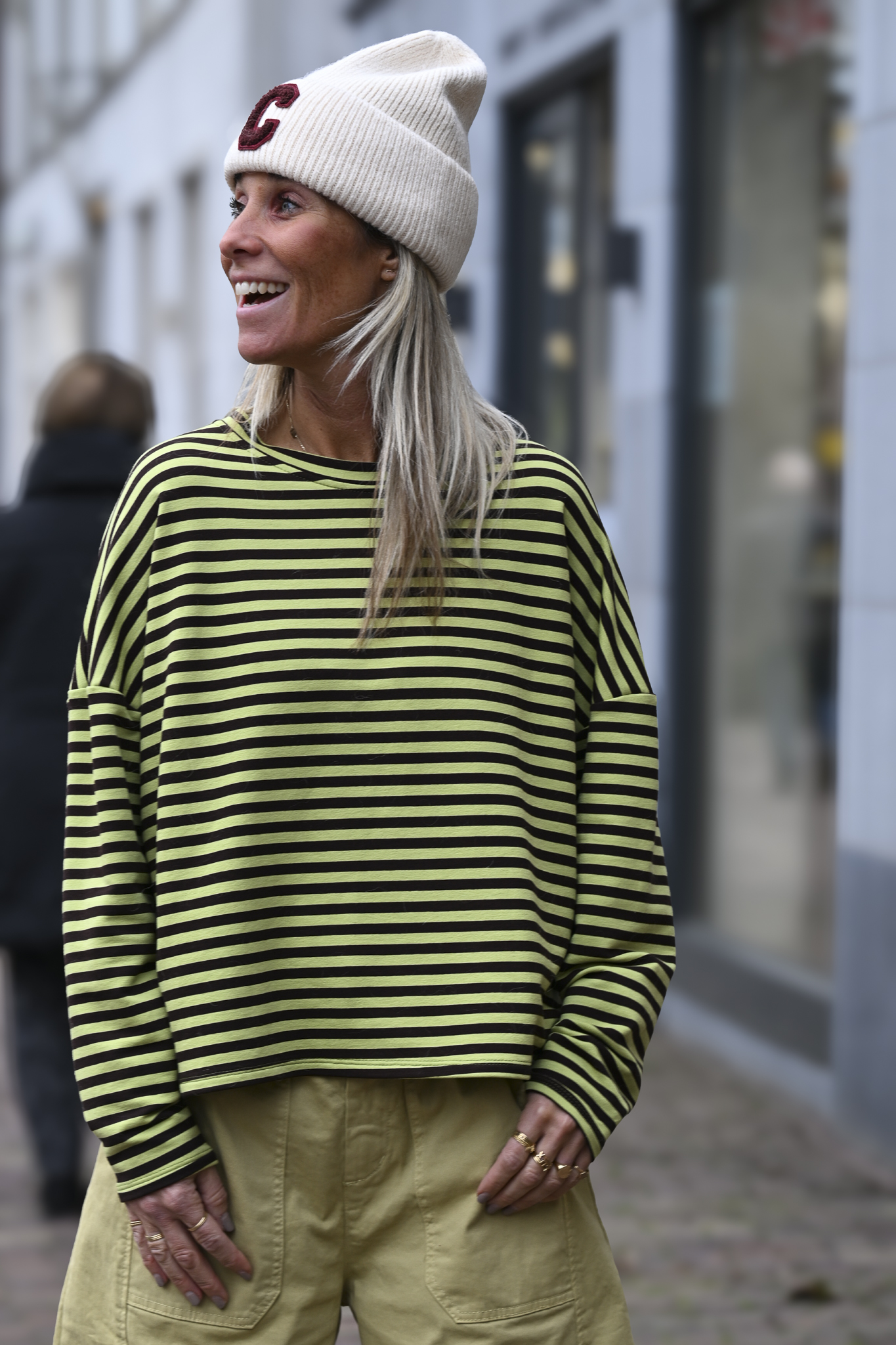 Deze licht oversized trui zit tussen een sweater en een longsleeve in. Iets oversized model, draagbaar tot en met maat L/XL.
