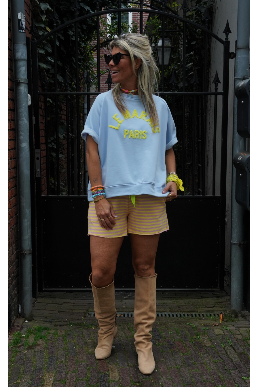 Deze little oversized sweater (80% katoen) heeft een perfecte fit met 3/4 mouwen en stijlvolle kleuren. Een must-have voor een effortless...