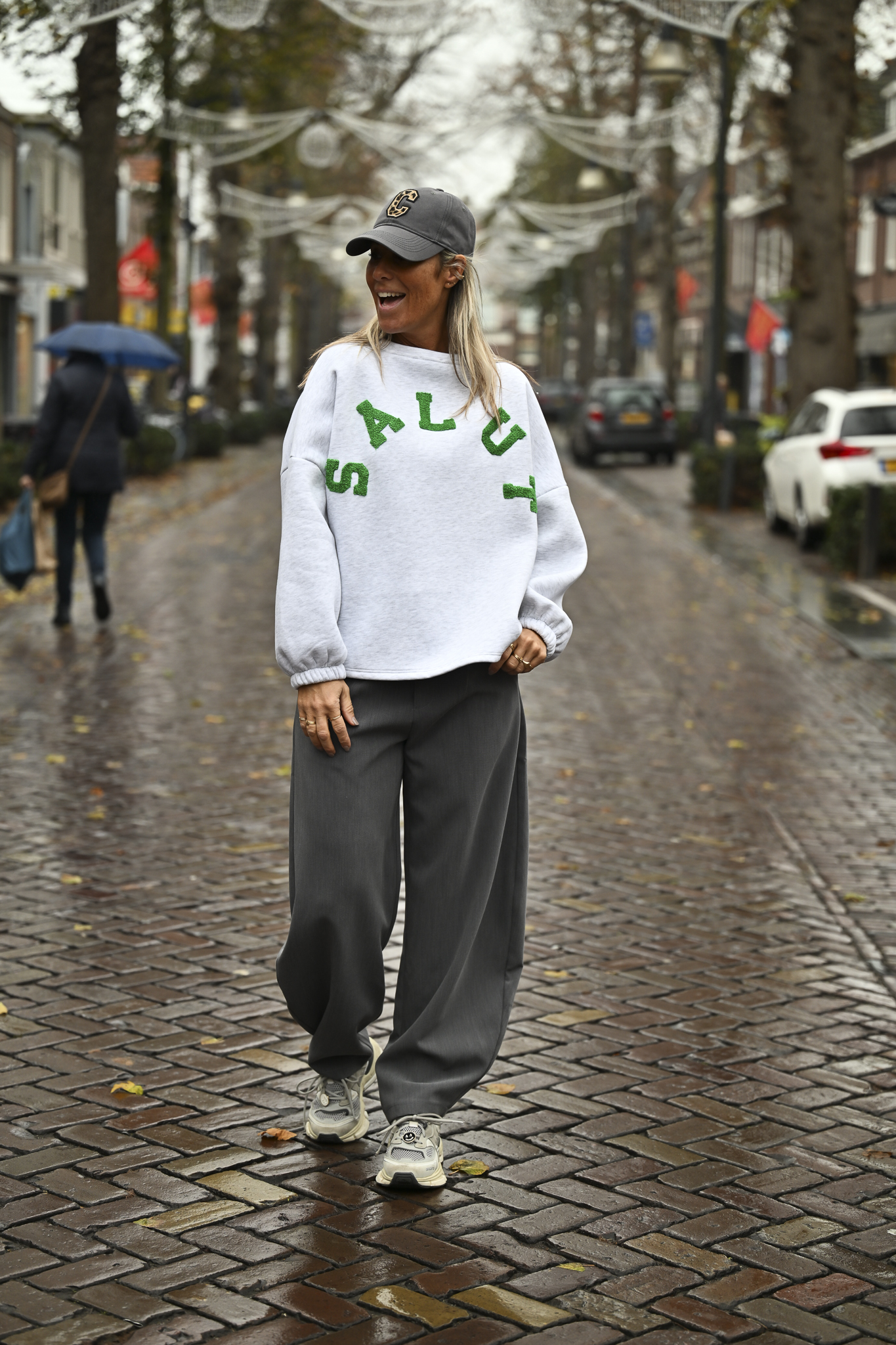 Alert: deze Sweater Salut wil je NU! Zacht gevoerd, comfy oversized fit én die grote SALUT letters op de voorkant maken ’m echt next level. Onesize, draagbaar t/m L/XL.