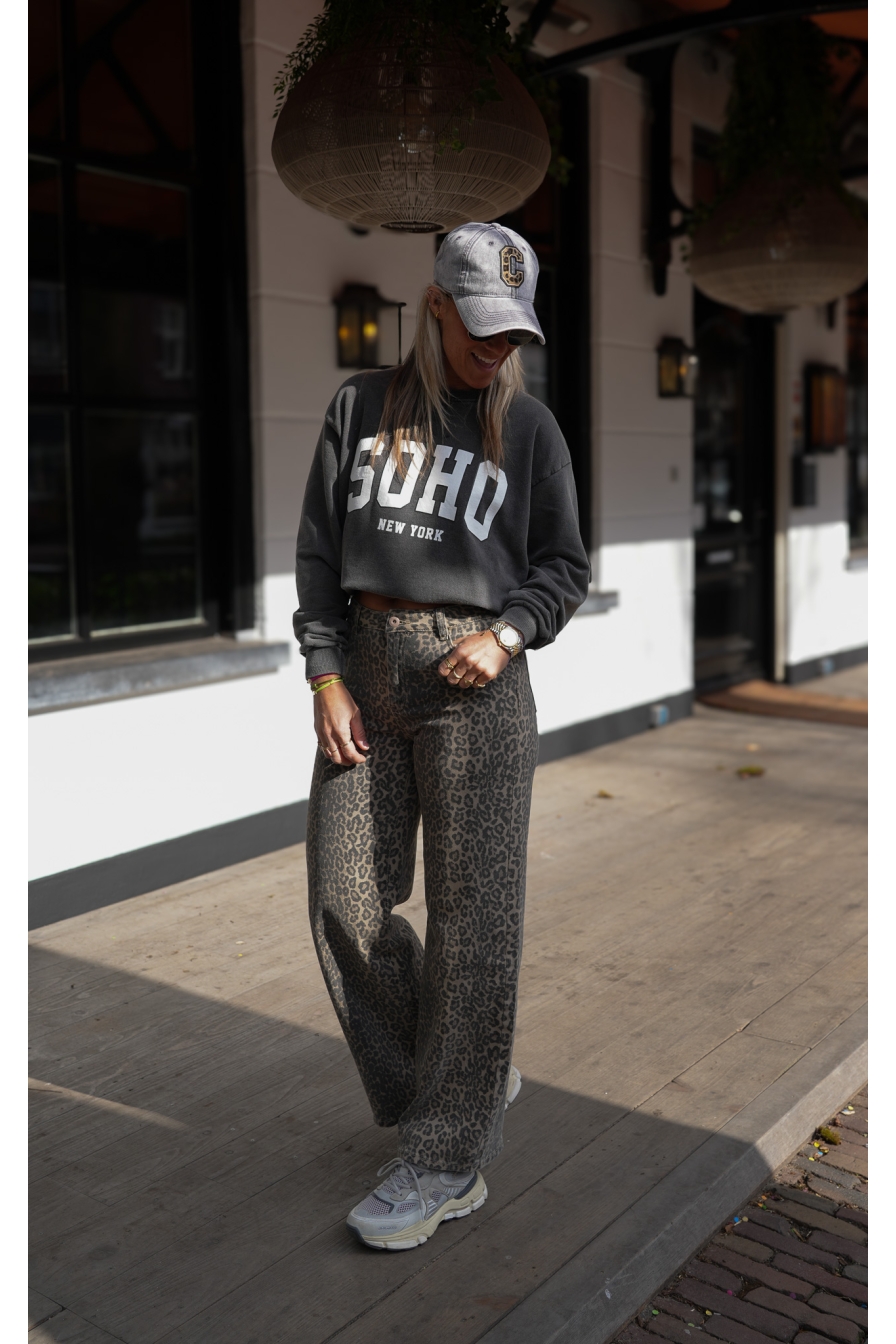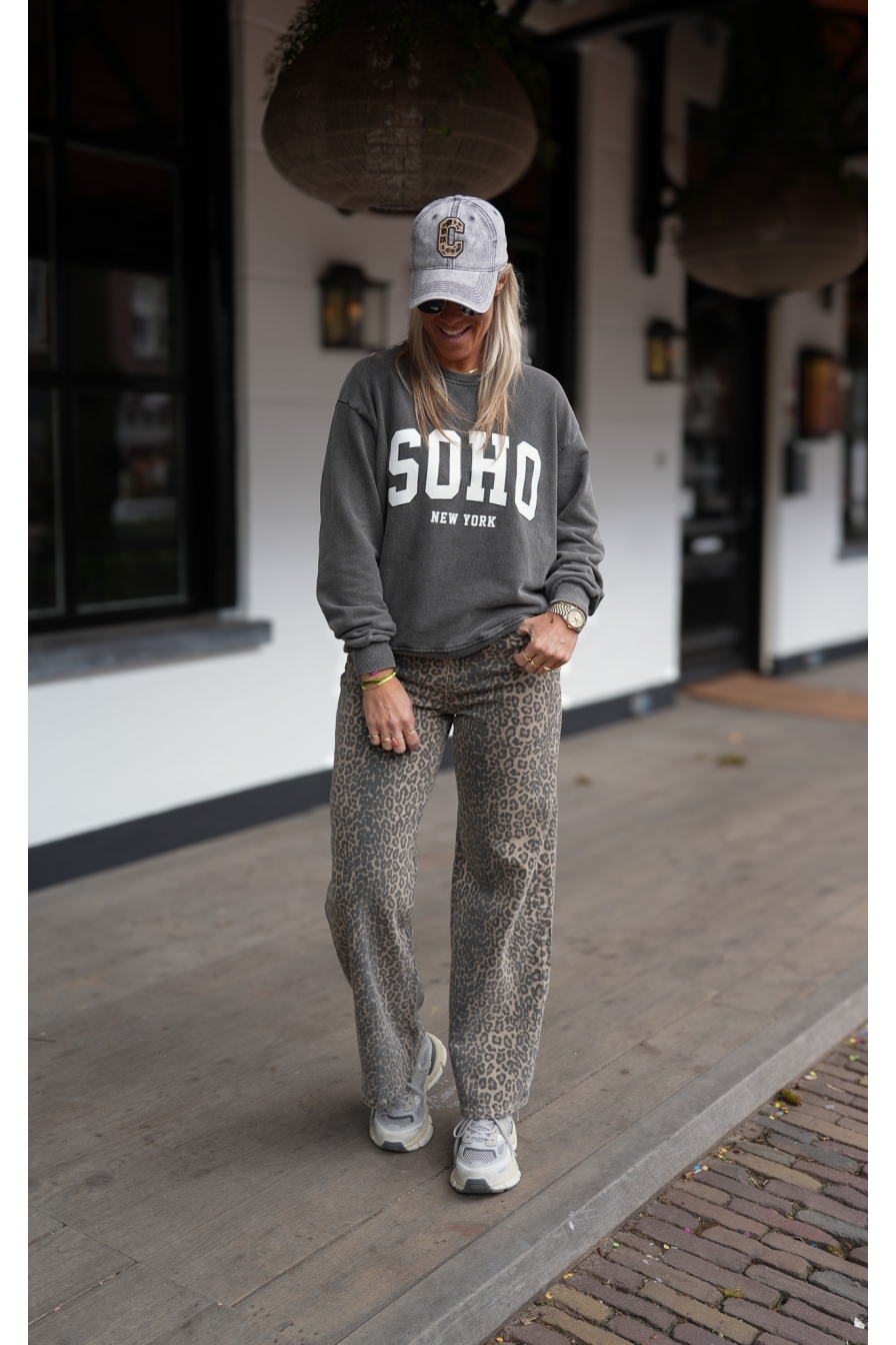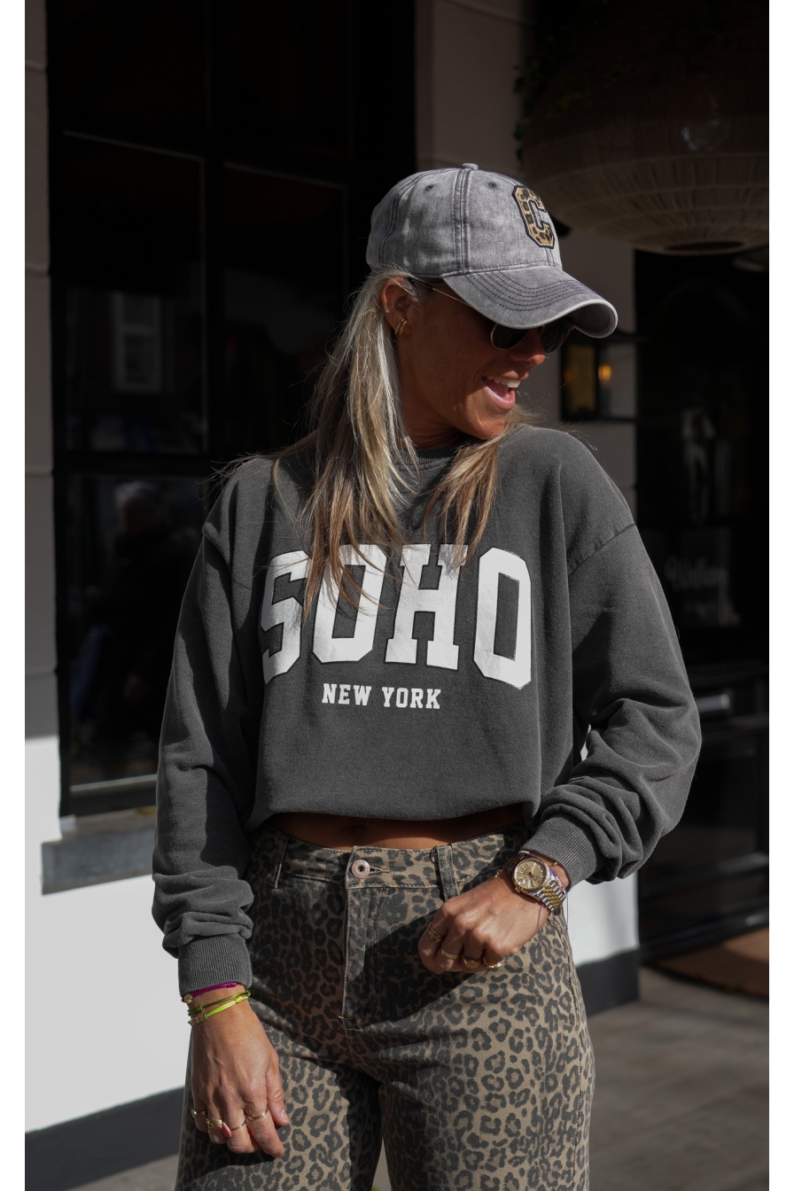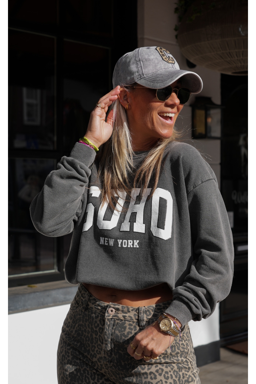 De Perfecte SOHO Sweater! Deze heerlijke sweater is gemaakt van 100% katoen en voelt superzacht aan. Het one-size model draag je moeiteloos tot maat 44, perfect voor een relaxte en stijlvolle look.