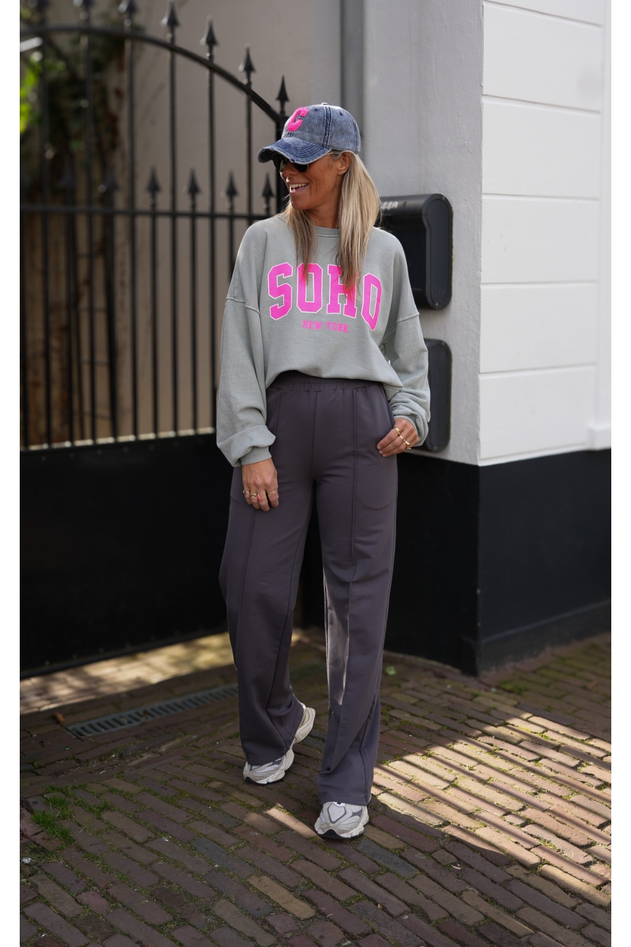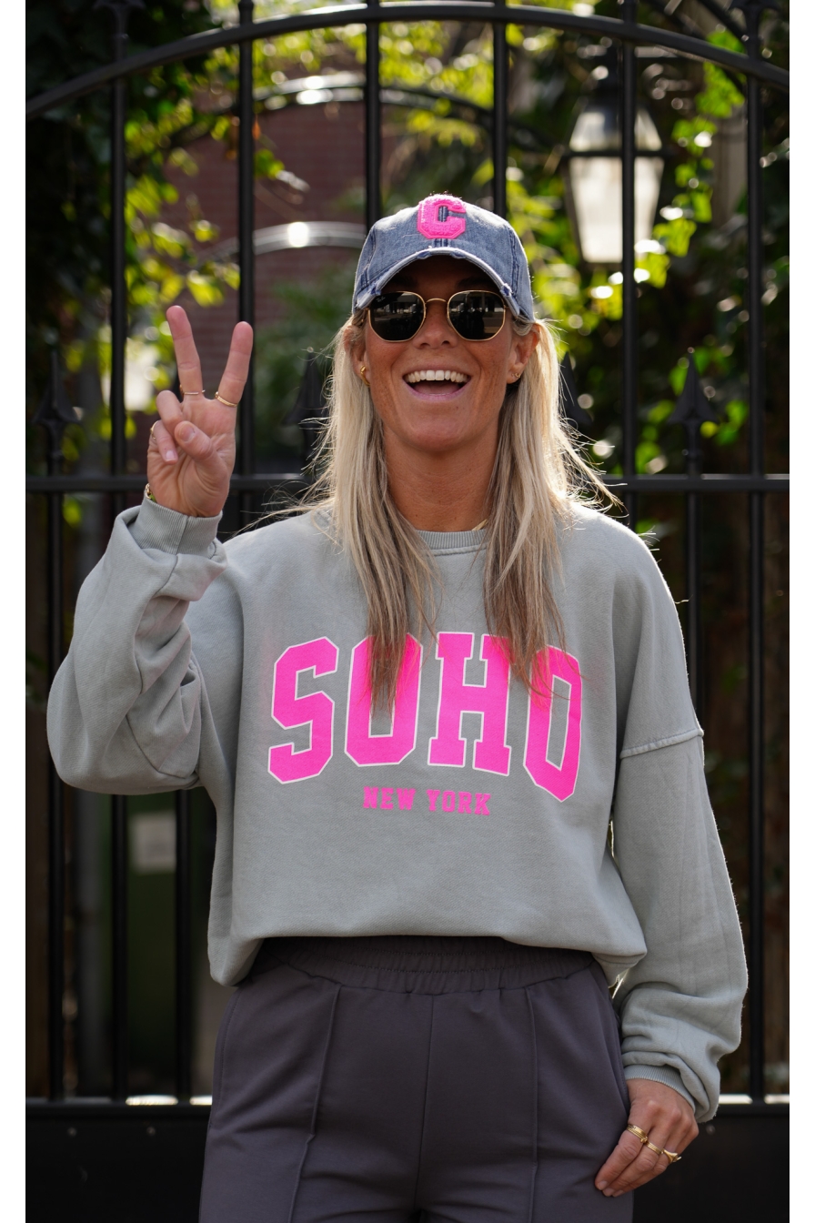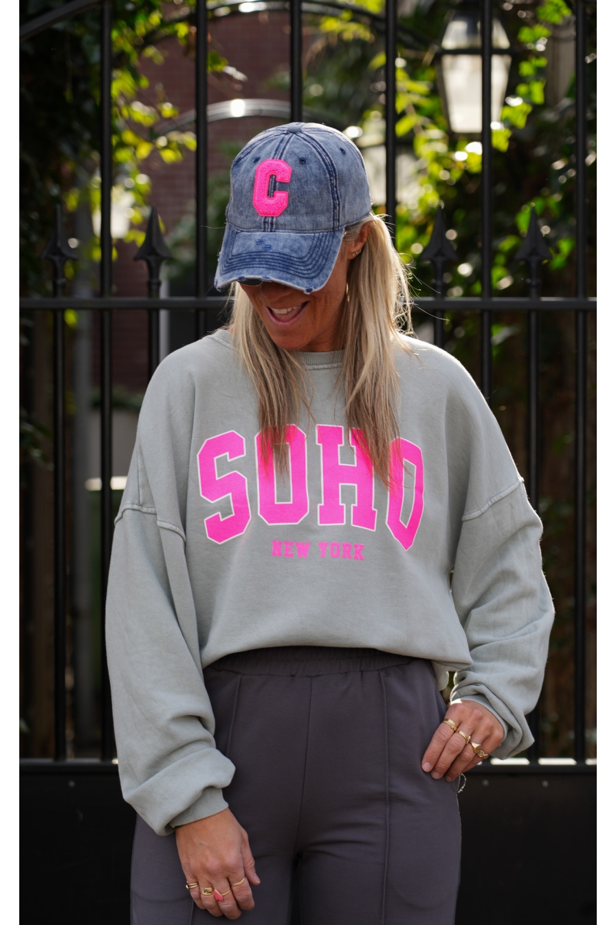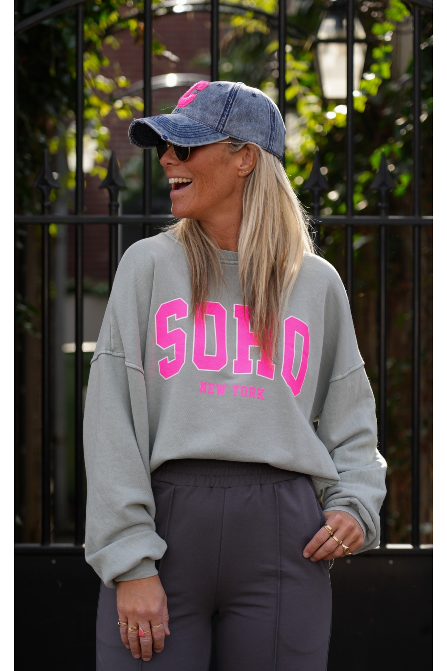 De Perfecte SOHO Sweater! Deze heerlijke sweater is gemaakt van 100% katoen en voelt superzacht aan. Het one-size model draag je moeiteloos tot maat 44, perfect voor een relaxte en stijlvolle look.