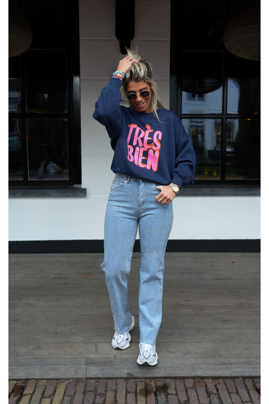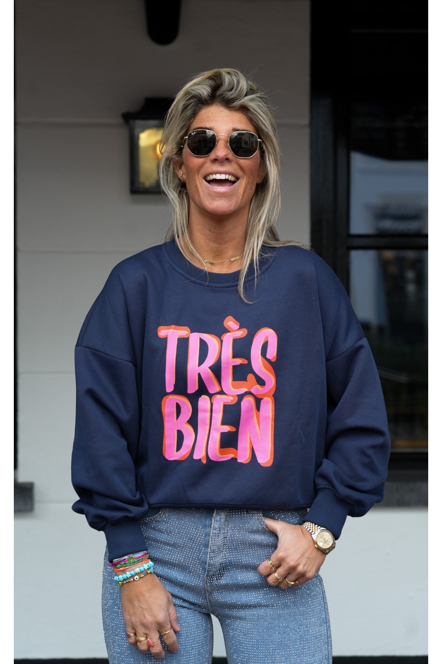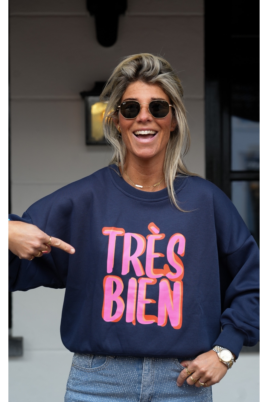 Verzending met DHL !Sweater Tres Bien Donkerblauw