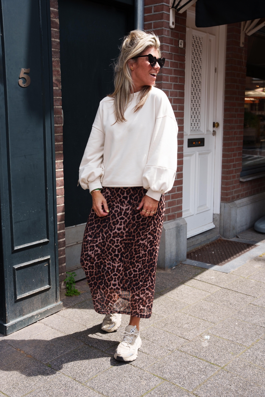 Sweater Xabi is gemaakt van 100% katoen, wat zorgt voor een natuurlijke en comfortabele textuur. Dit onesize-model is voorzien van modieuze pofmouwen en heeft een uitsnede op de schouders (wel boven je BH-bandje zodat je deze niet ziet) voor een extra stijlvolle uitstraling. De Sweater Xabi is geschikt voor maten tot en met L/XL.