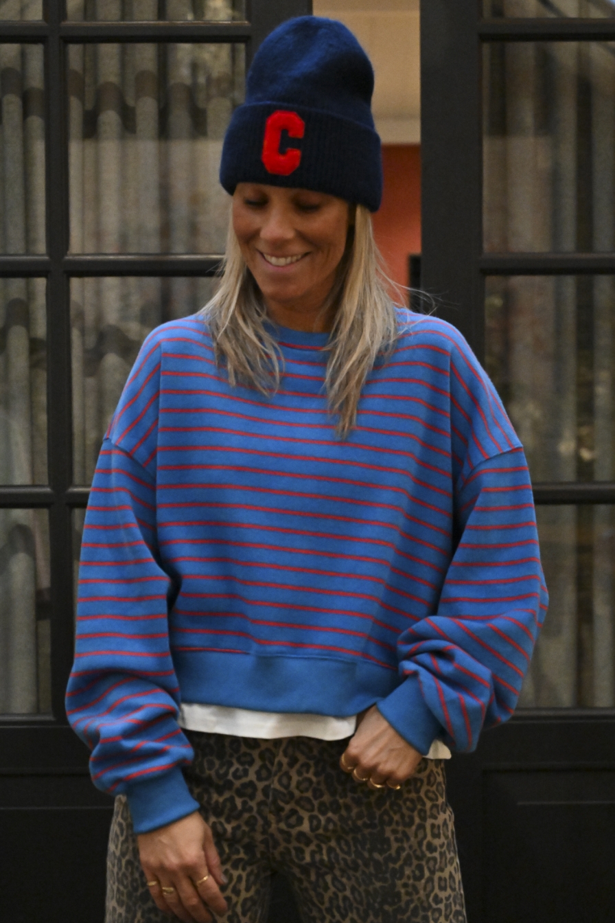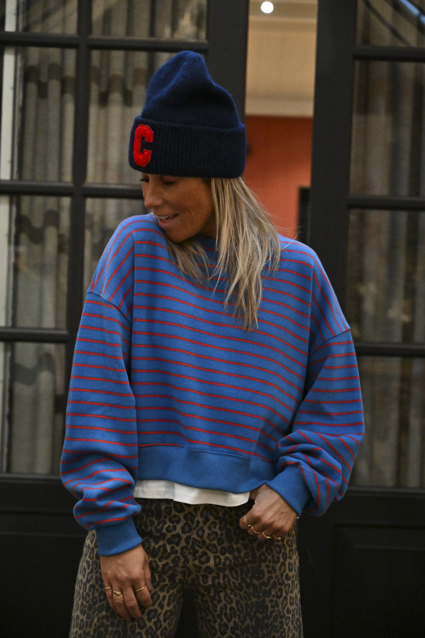 Verzending met DHL !Sweater Yvie Blauw - Rood