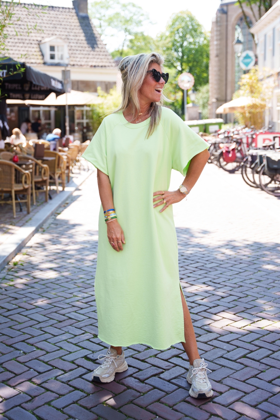 Sweaterdress Simone is vervaardigd uit 100% katoen en is dankzij de zomerse sweaterstof een absolute must-have voor deze zomer. Dit...