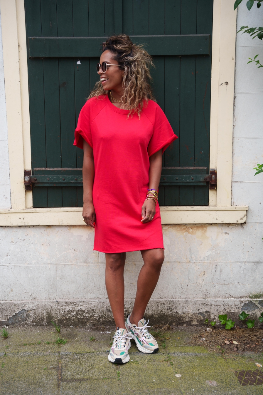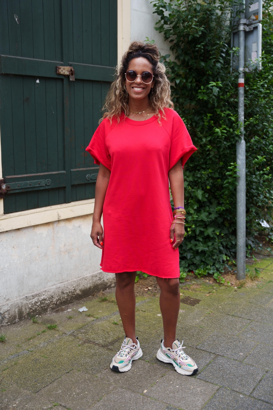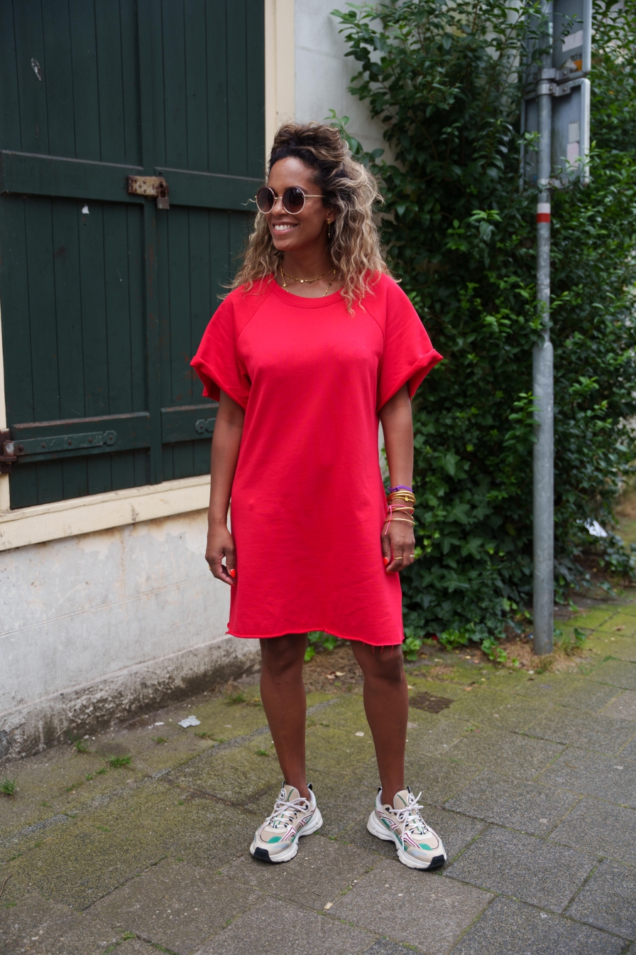 Sweaterdress Xoxo is gemaakt van 100% katoen en is dankzij de zomerse sweaterstof een absolute must-have voor deze zomer. Dit kortere onesize model draag je moeiteloos van maat S tot en met XL, waardoor het de perfecte keuze is voor zowel comfort als stijl.