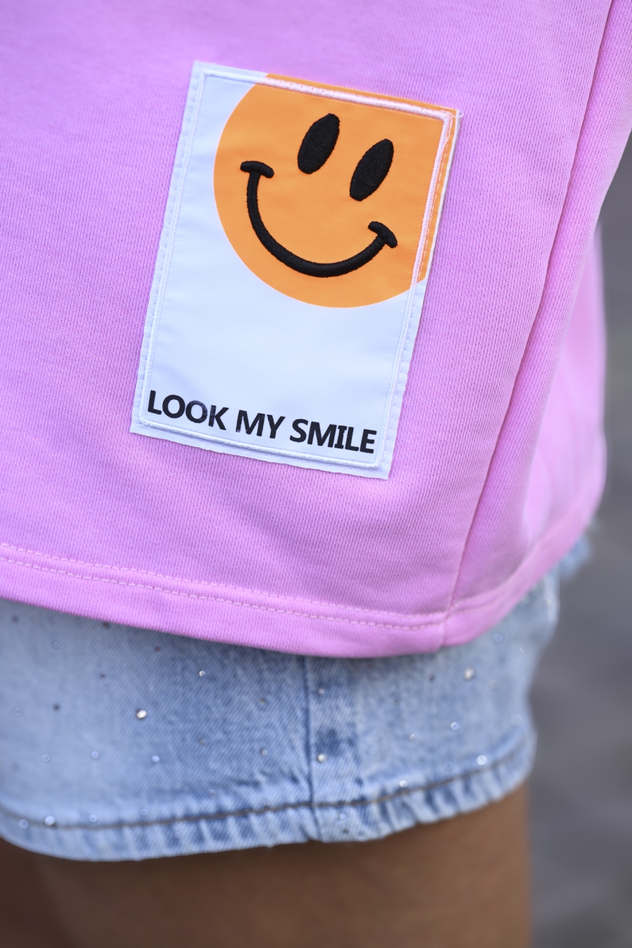 Nog 1 op voorraadVerzending met DHL !Sweatshirt 3/4 Smiley Pink