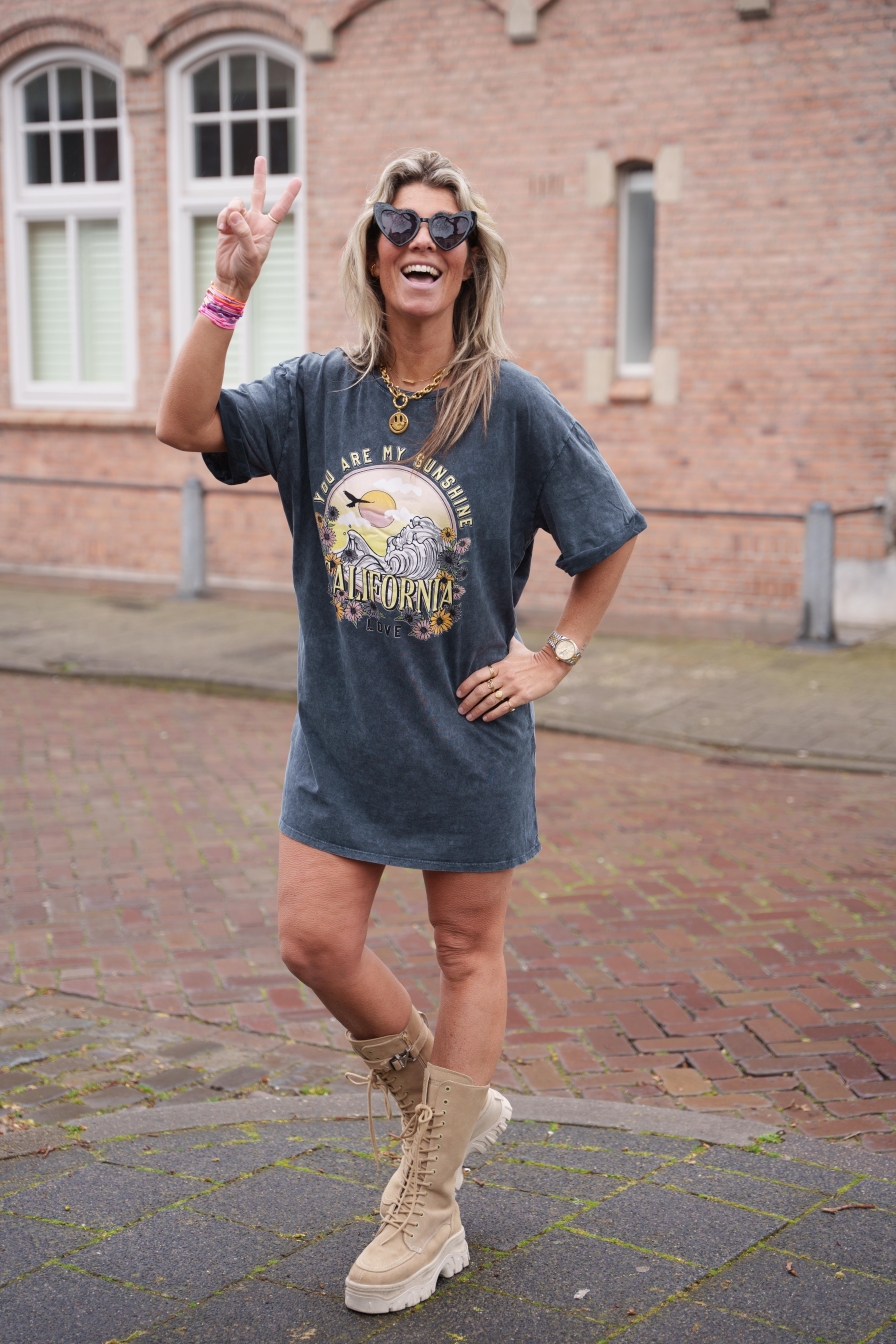 T-shirt dress Sunshine is gemaakt van 100% katoen voor een zachte en ademende feel, ideaal voor zonnige dagen. Met een ronde hals en kleine kapmouwtjes straalt deze jurk moeiteloze elegantie uit. Dit Onesize jurkje draag je tot en met maat XL.