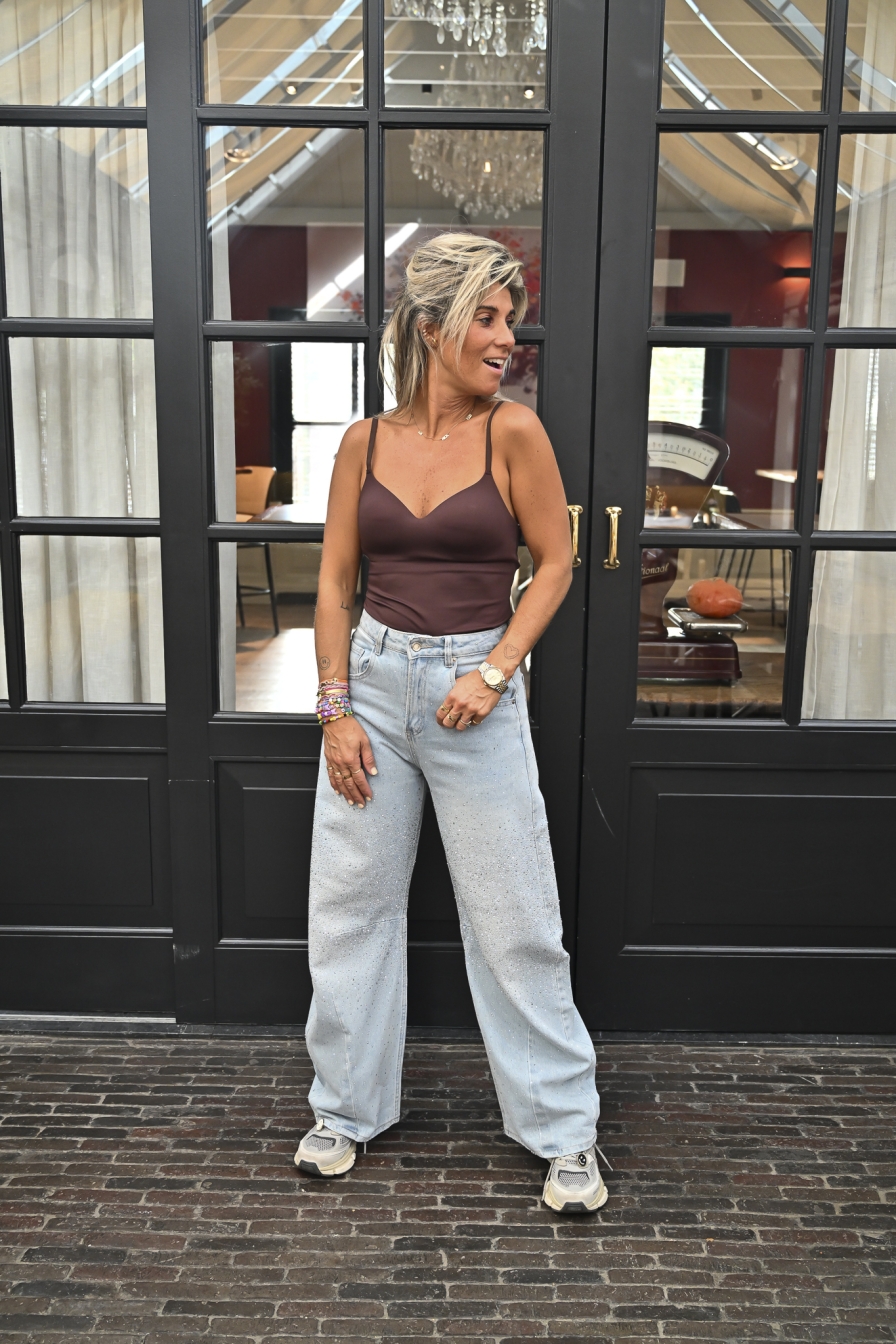 OMG deze top is een absolute must-have onder al je outfits! Super zacht, mega comfy en geen BH meer nodig. Dankzij de verstelbare bandjes pas je ‘m helemaal naar jouw lichaam aan. Ik draag maat M op de foto, hij valt perfect, maar niet geschikt voor een grotere boezem.