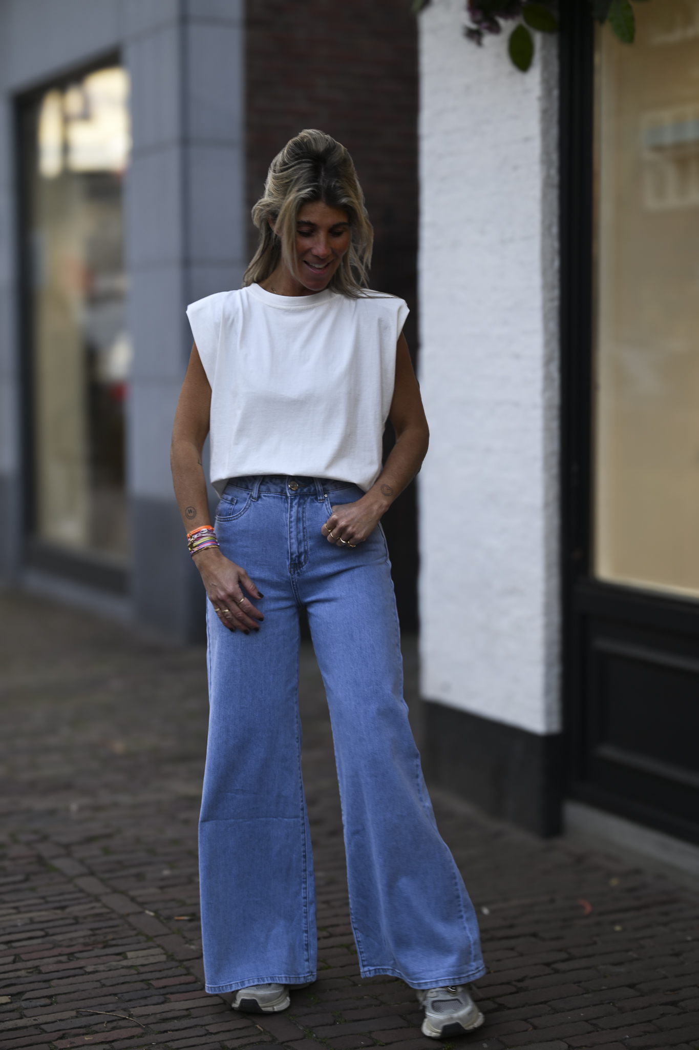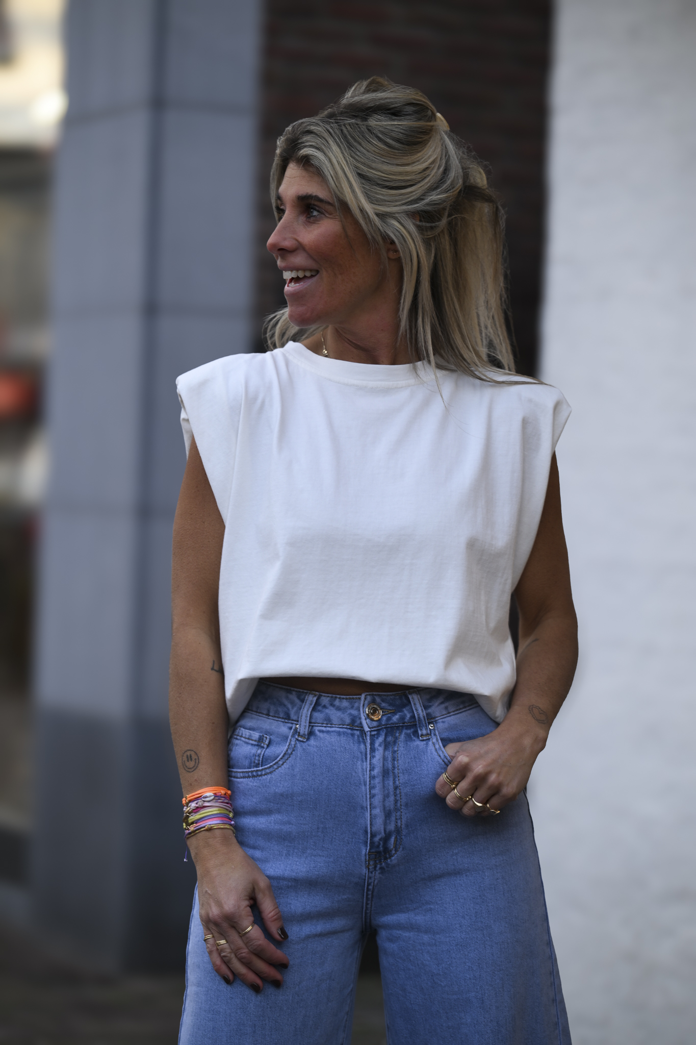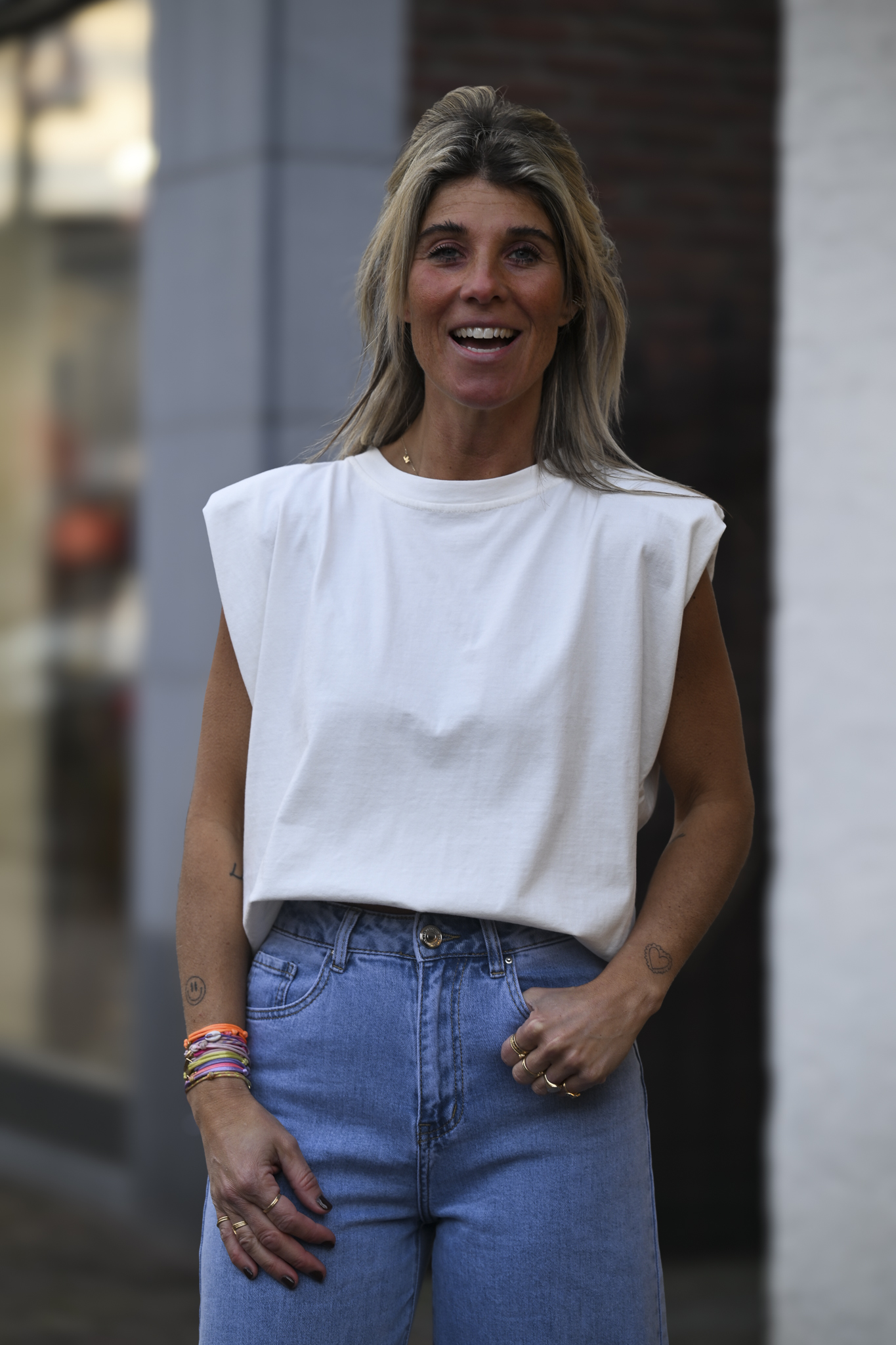 Top Zaar valt op door de schoudervulling en de langere achterkant. Onesize model, draagbaar tot en met maat L–XL