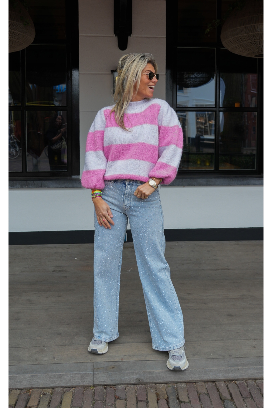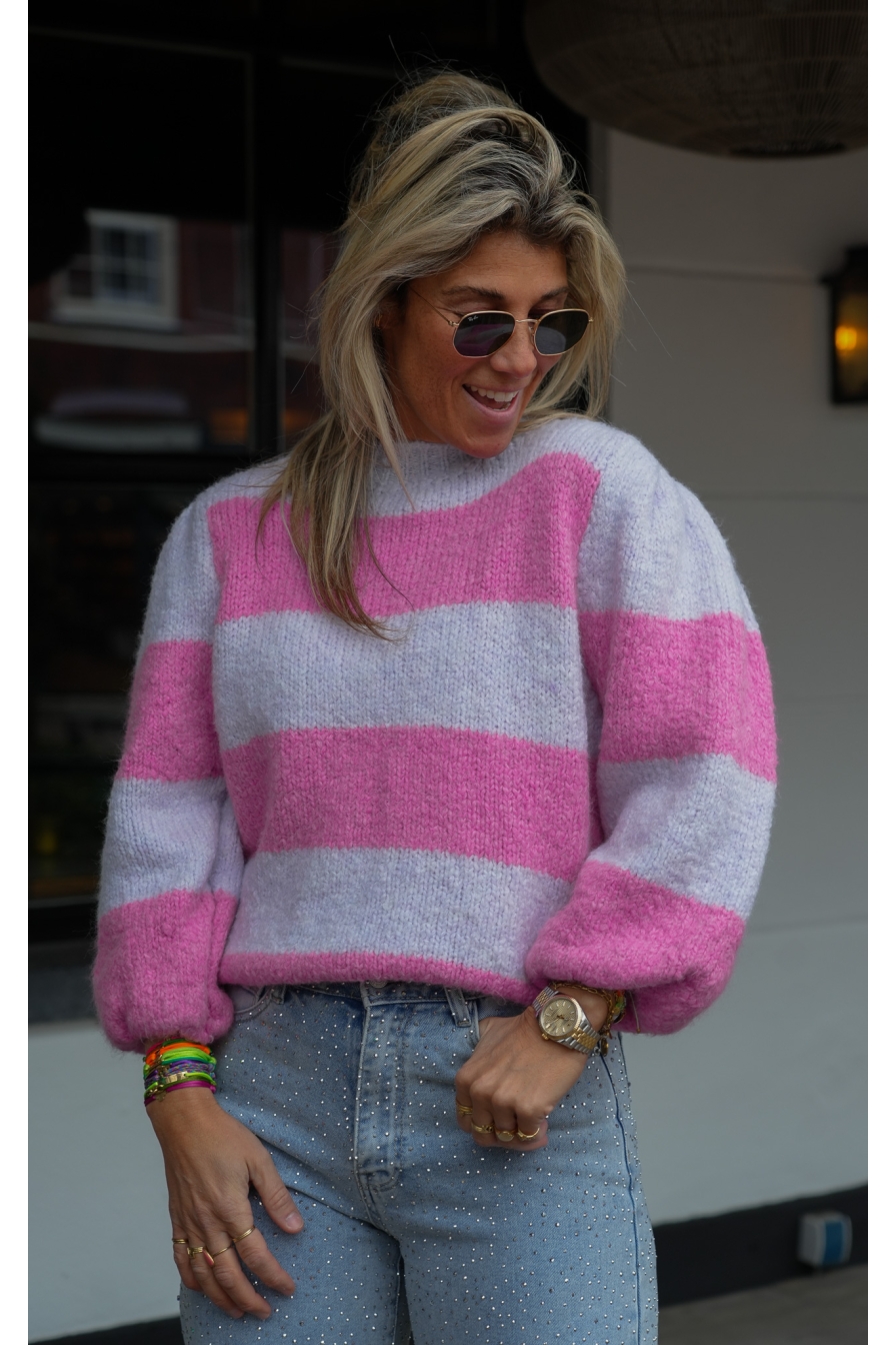 Verzending met DHL !Trui Lara Pofmouw Lila Roze