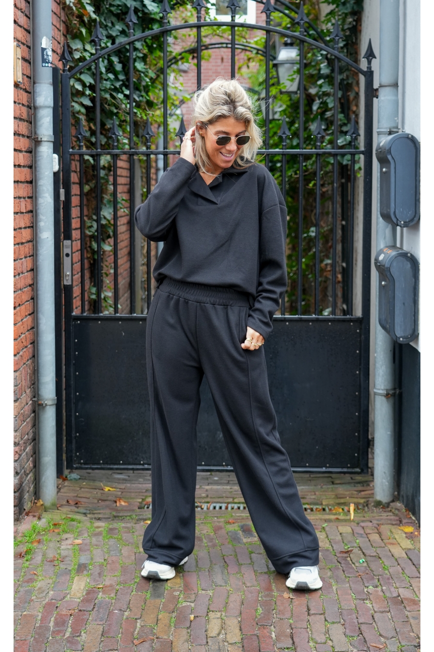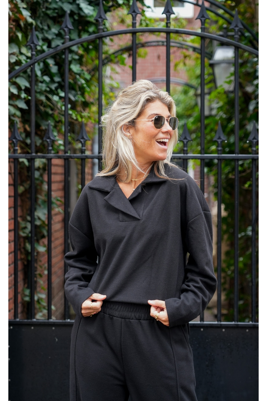 Trui Mitchy is gemaakt van zwaarder matriaal, waardoor hij prachtig valt en een chique uitstraling heeft. Het model op de foto is 1.76m en draagt maat S/M.