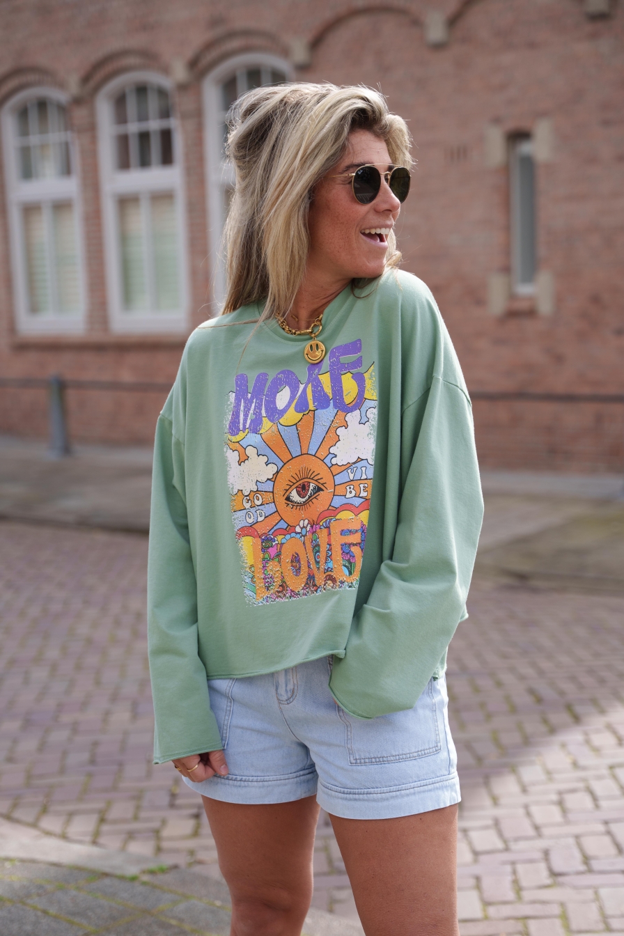 Verzending met DHL !Trui MORE Love Turquoise