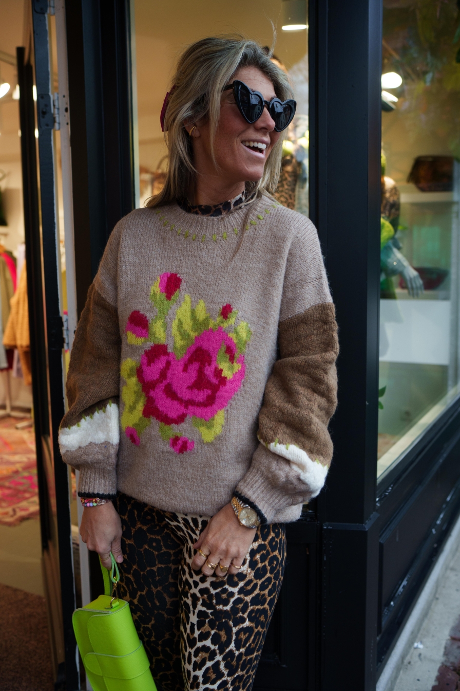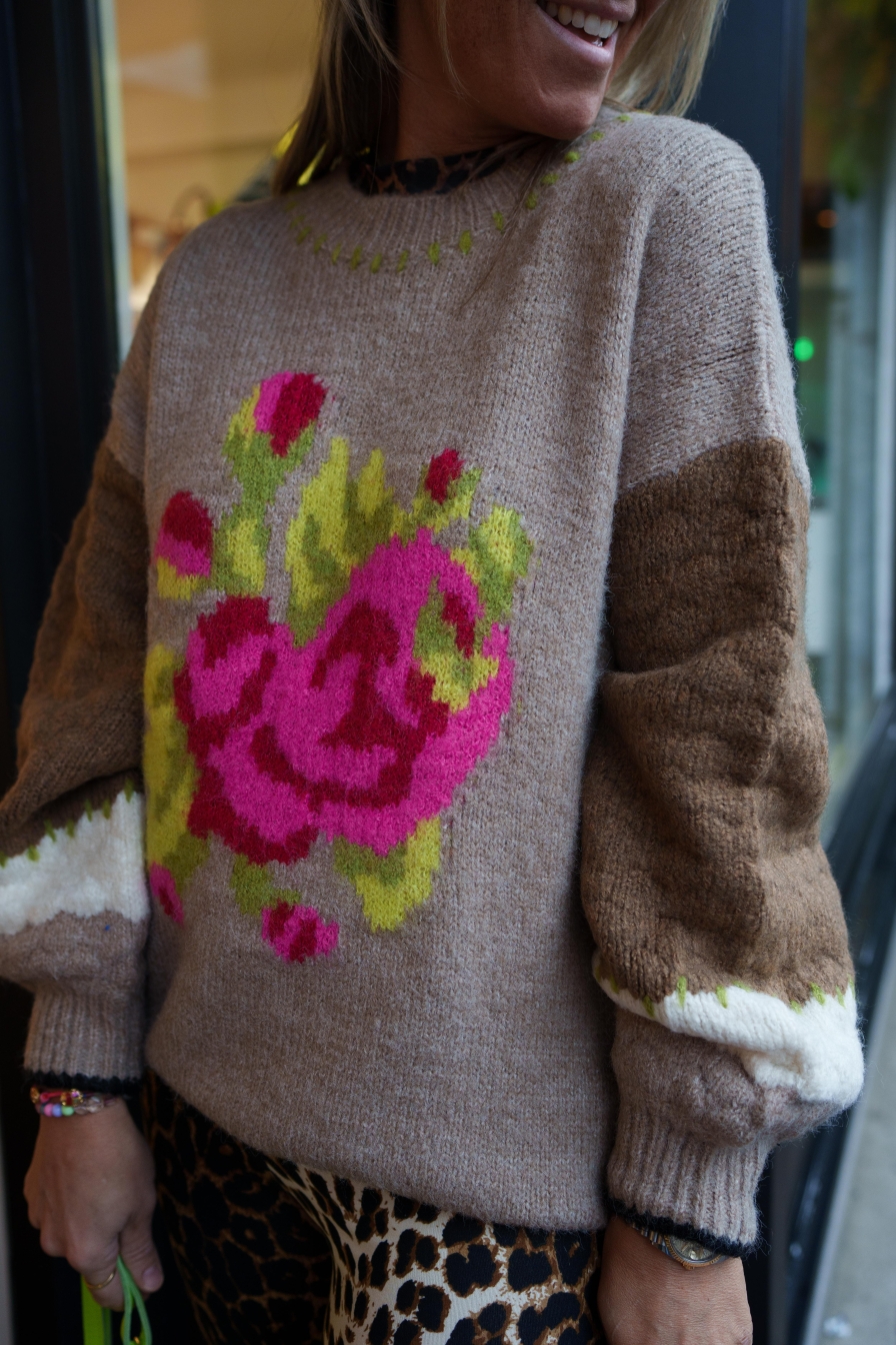 Verzending met DHL !Trui Rose Camel Fuchsia