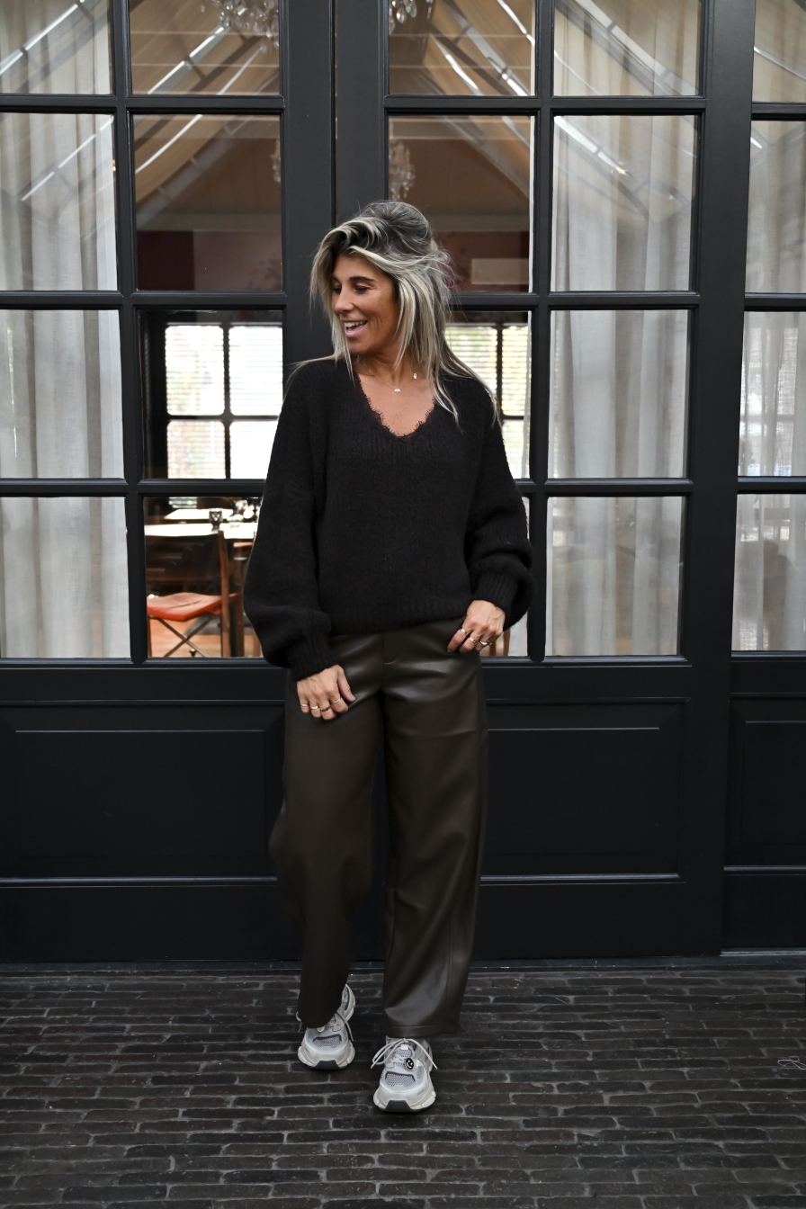 Let op: deze truien worden speciaal voor jou verpakt en hebben een levertijd van 3 tot 5 werkdagen. Op de foto lijkt de kleur zwart maat het is donkerbruin. Het wachten is het helemaal waard, want de stofsamenstelling is top – slechts 9% wol, waardoor deze truien niet prikken en superzacht aanvoelen.Het onesize model draag je t/m maat L/XL.Heel gaaf te combineren met onze lace tops voor een complete look.
