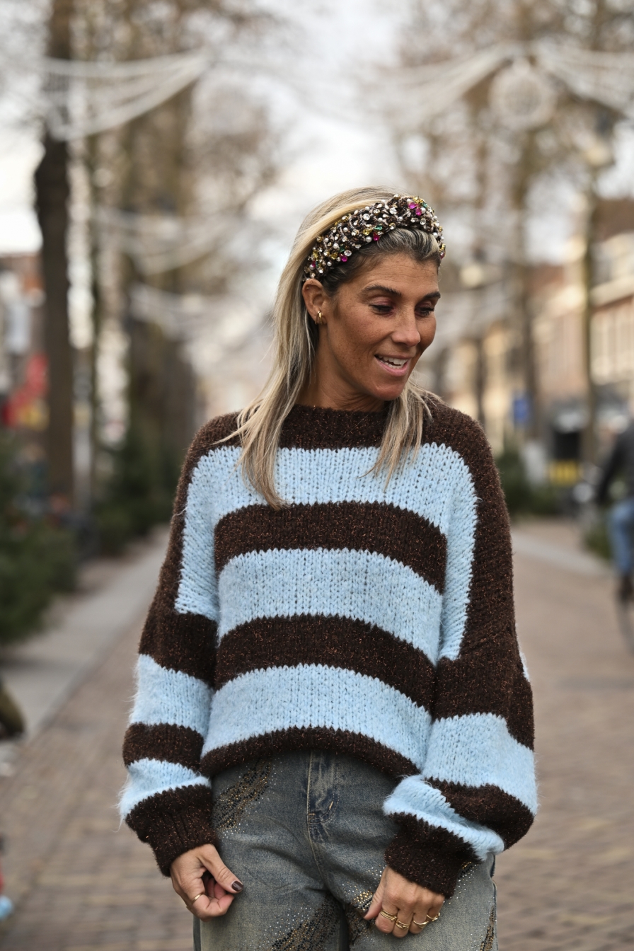 Verzending met DHL !Trui Wenke Blauw-Bruin