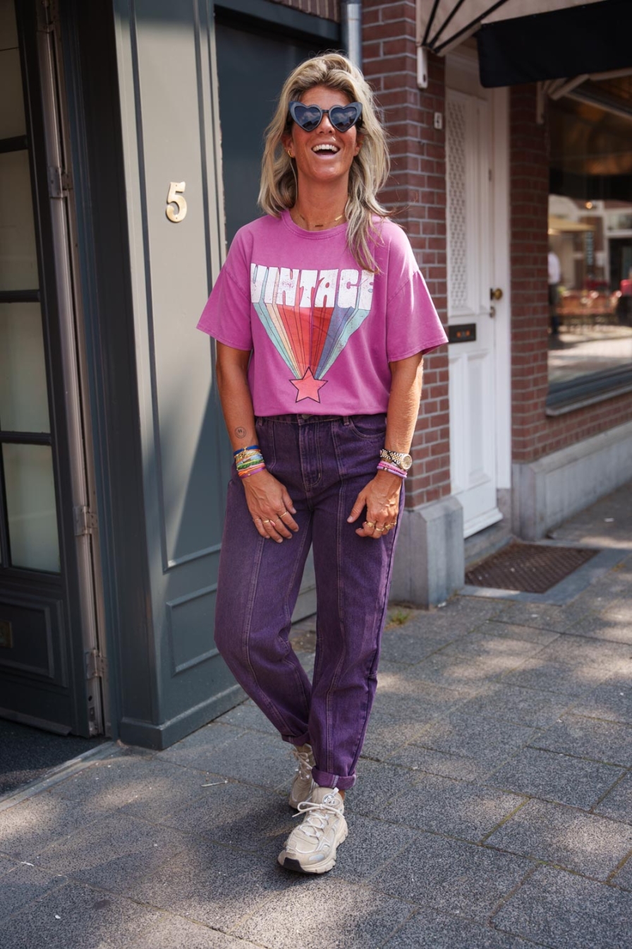 Dit lichtpaarse stonewashed shirt met vintage print is een echte must-have! Gemaakt van 95% katoen en 5% elastaan, biedt het precies...