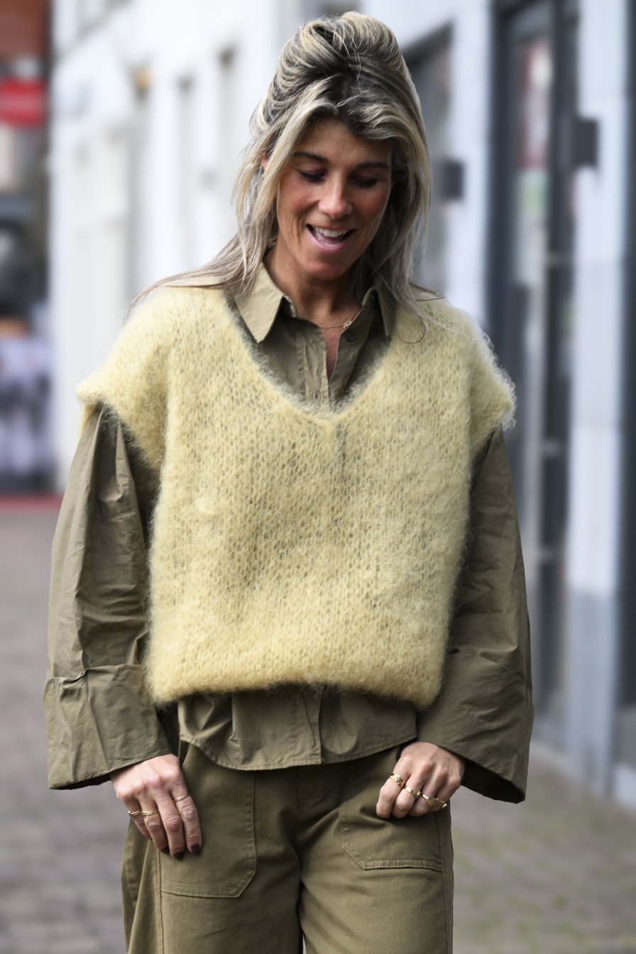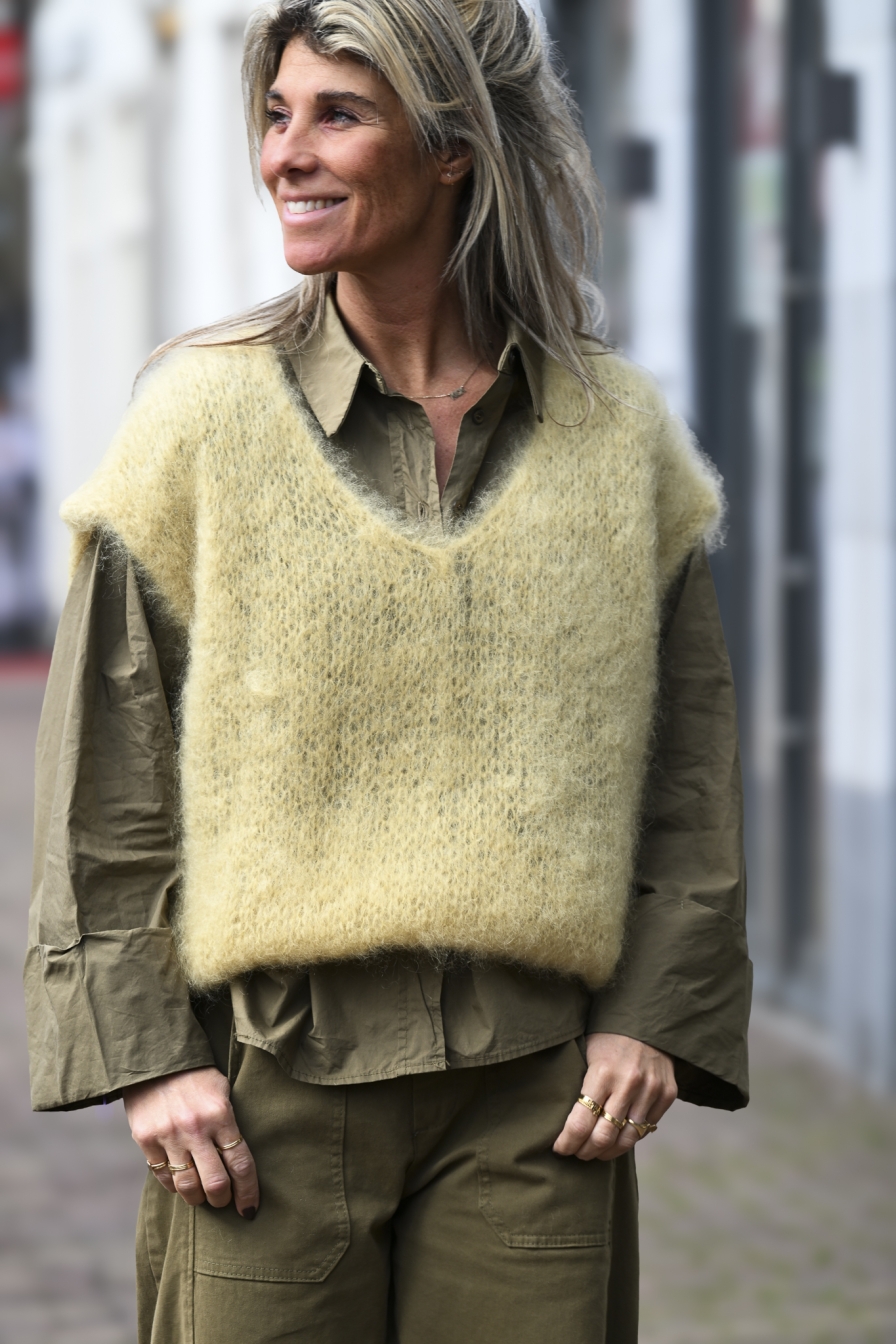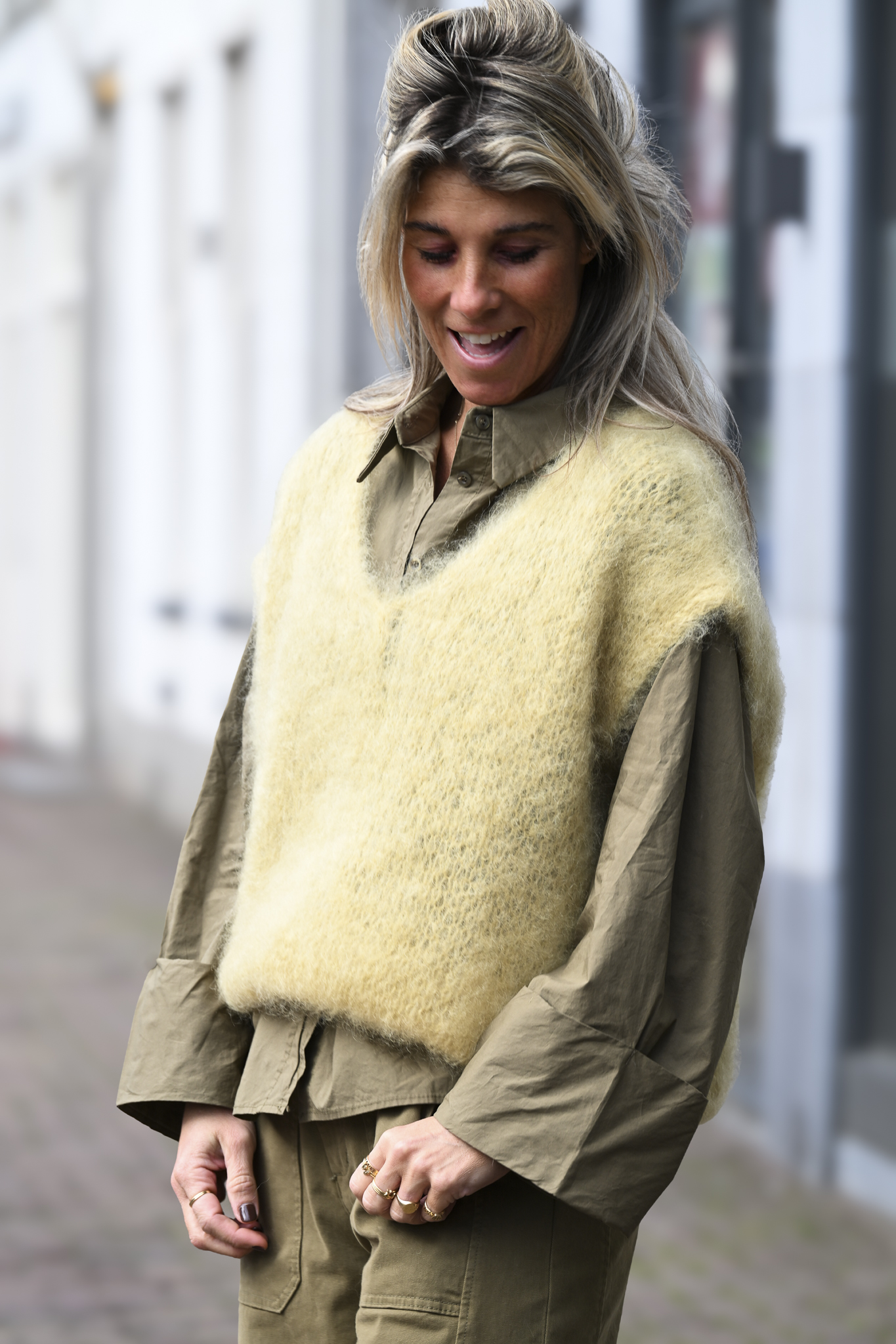 Wauw! Dit luxe gilet is gemaakt van 80% kidmohair. Onesize model met elastische band aan de onderkant voor een perfecte fit. Draagbaar tot en met maat L–XL – super zacht en super stylish.