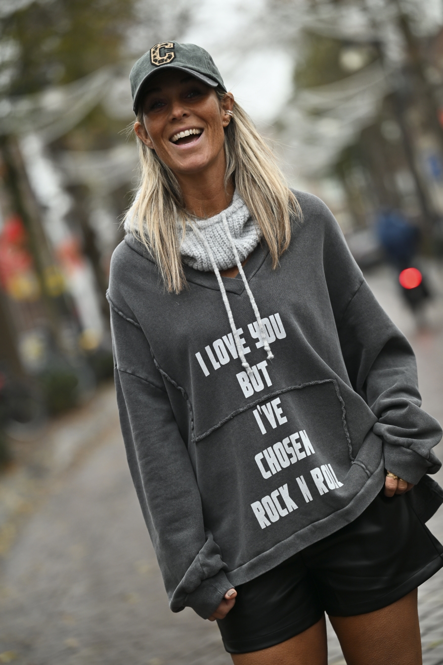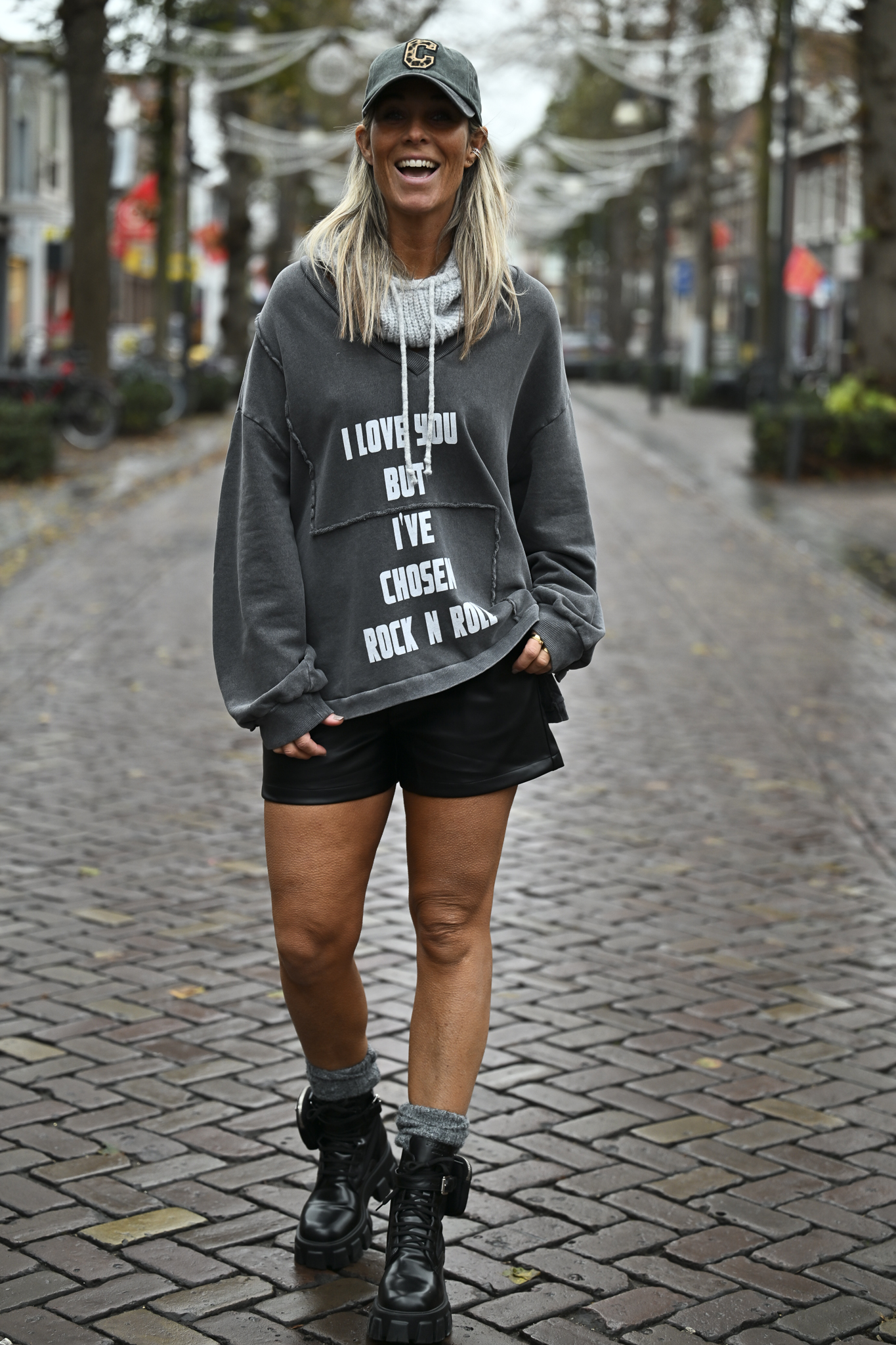 Oversized Onesize sweater met V-hals en streetstyle naden. Met de tekst “I love you but I’ve chosen Rock N Roll” – statement...