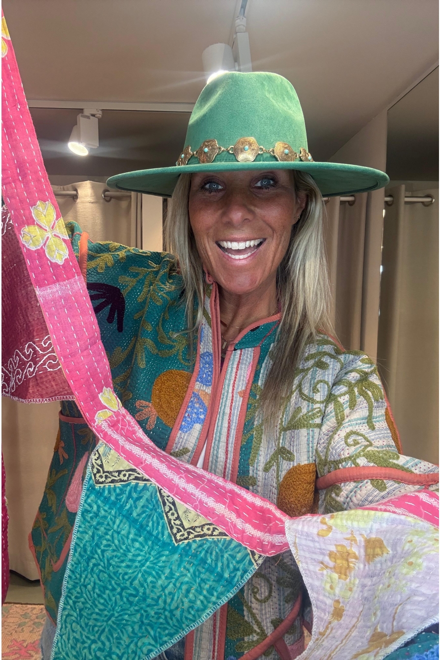 Deze vintage katoenen slingers zijn allemaal uniek en handgemaakt. De slinger heeft een lengte van 3 meter, met driehoekige vlaggetjes van 20 cm breed en 30 cm hoog. Koop je meerdere slingers,dan kun je ze eenvoudig aan elkaar knopen en zo elke ruimte op maat versieren. Geen wegwerpslingers meer, maar duurzame katoenen exemplaren – stoer, uniek en elke keer weer een feestje om op te hangen!