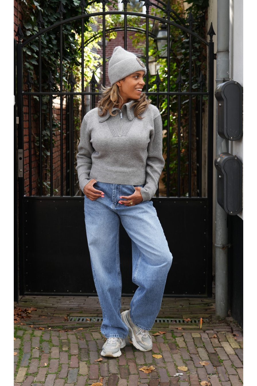 ZIP Trui ELLE is een cropped model met rits. gemaakt van 31%Acryl 28%Poly 23%Nylon